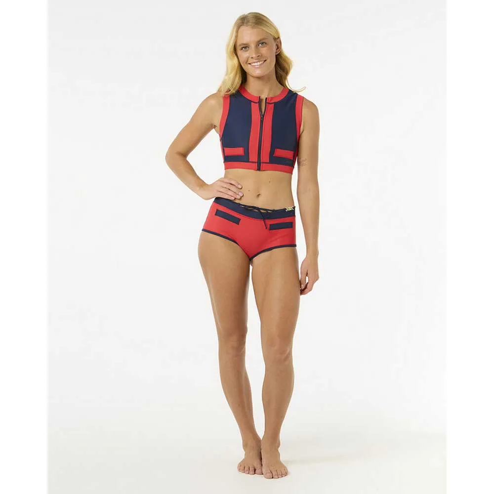 Эти шорты с дерзким эффектом выполнены из нетканого полиамида и имеют контрастный пояс, контрастную окантовку и металлические логотипы в виде космических поцелуев.