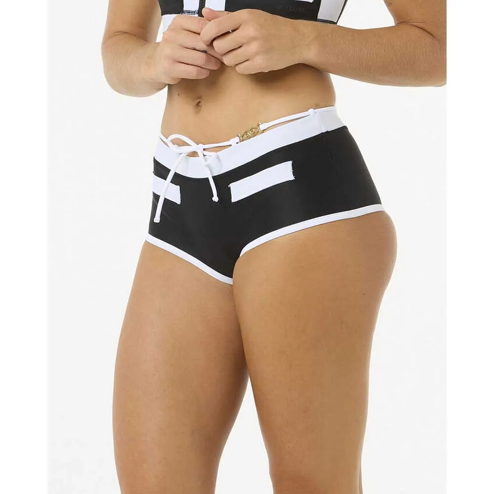 Эти шорты с дерзким покрытием изготовлены из прошитой полиамидной ткани и имеют контрастный пояс, контрастную окантовку и металлические логотипы в виде космических поцелуев.