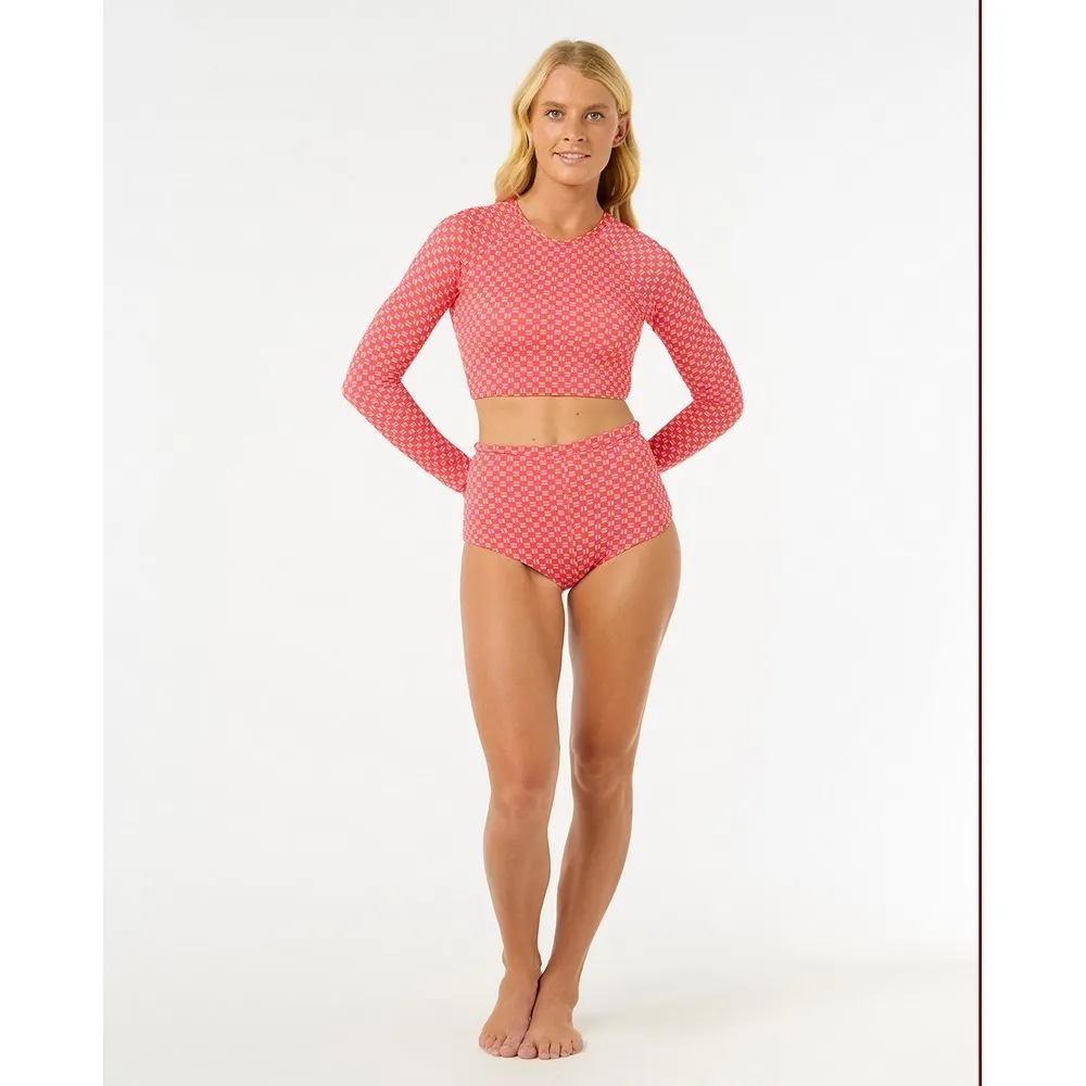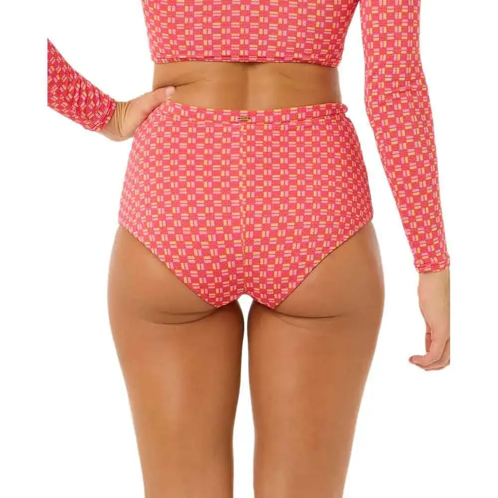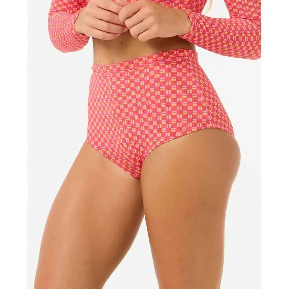 Эти плавки-бикини с высокой талией выполнены из ткани пике с люрексом и принтом по всей поверхности.