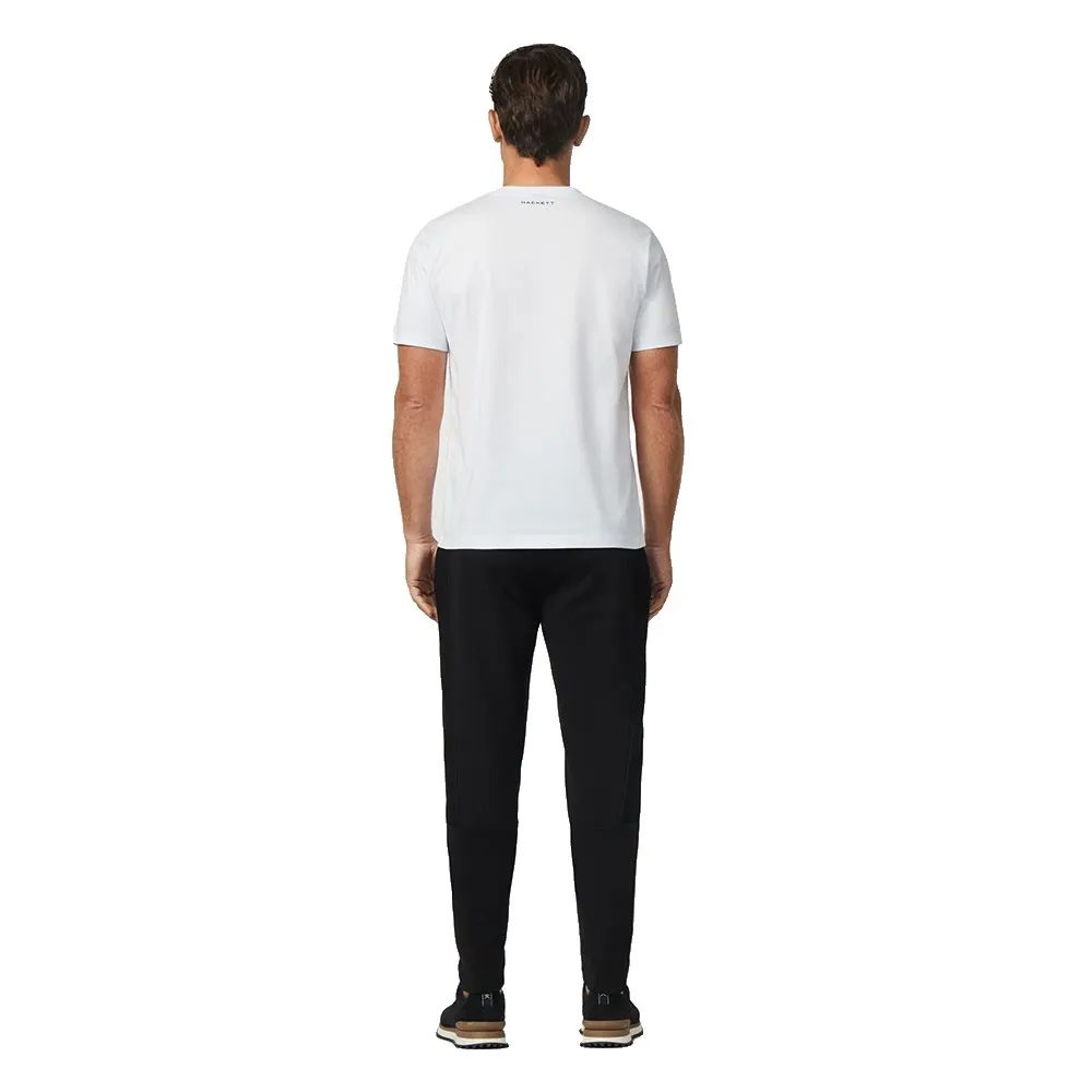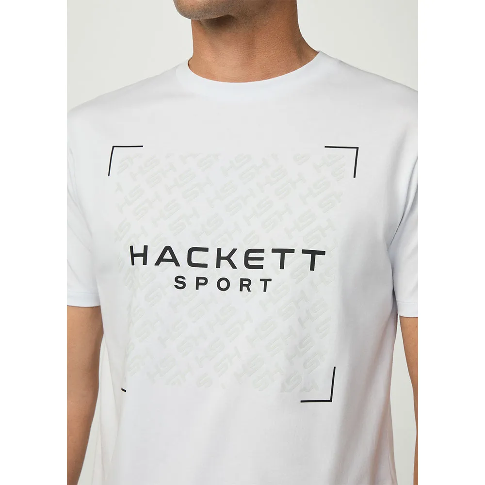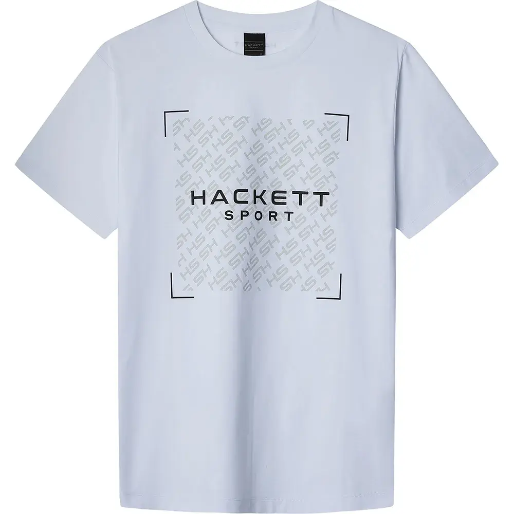 Футболка из 100% хлопка с контрастным логотипом HSPORT по центру груди, поверх которого расположен повторяющийся видимый логотип HS в тон с контрастными цветными краями.