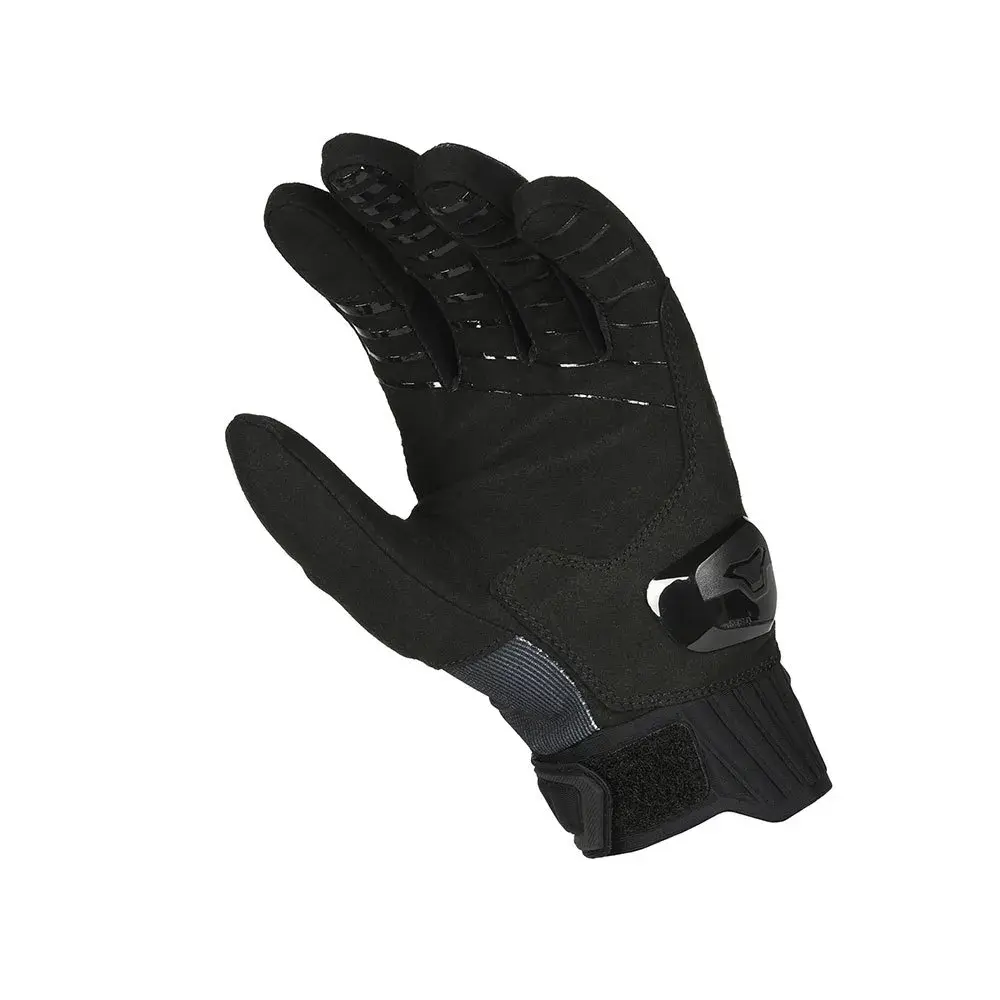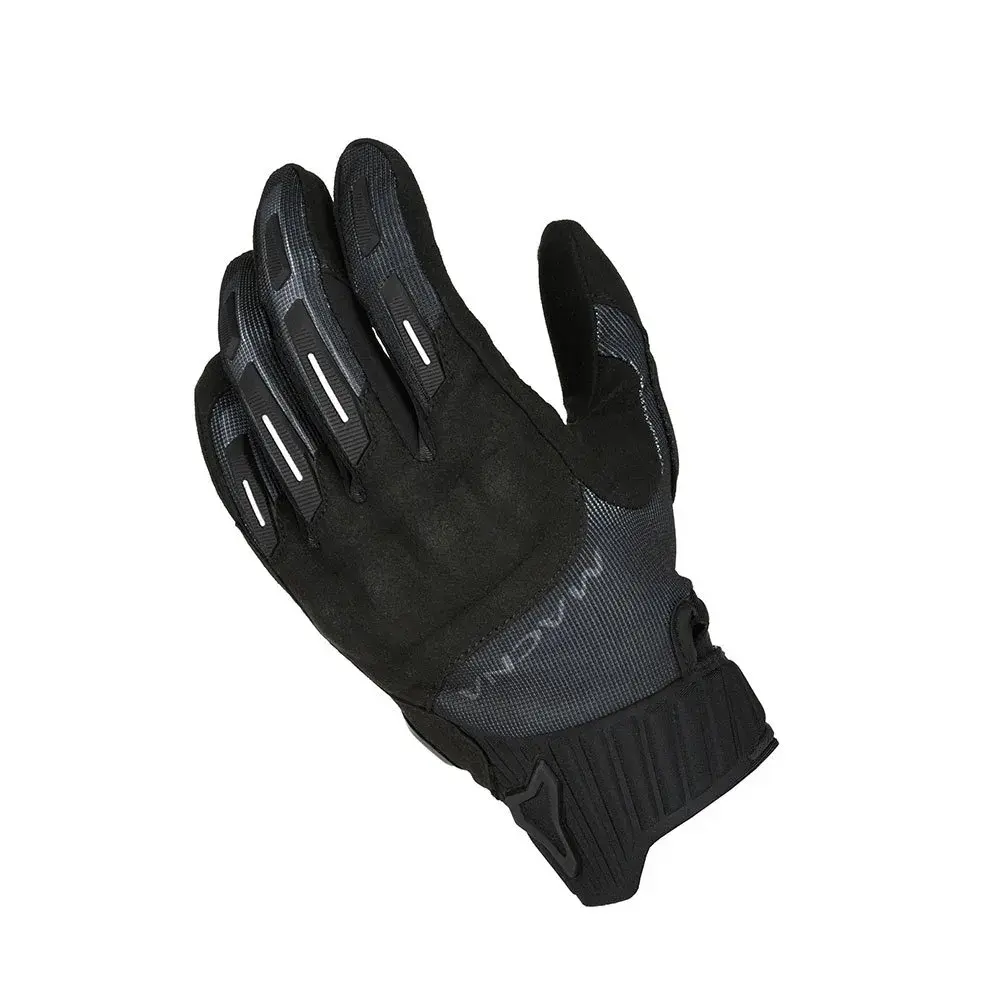 Перчатка с коротким манжетом из эластичной ткани на костяшках пальцев, кожей на ладони и различными защитными элементами, подходящая для райдеров в жарких условиях езды.
