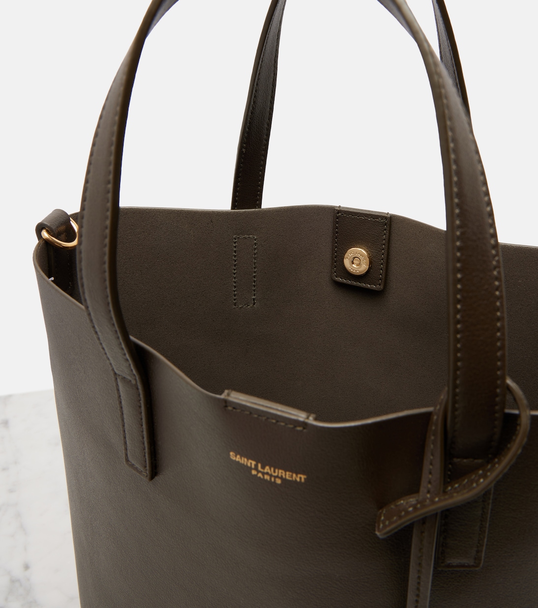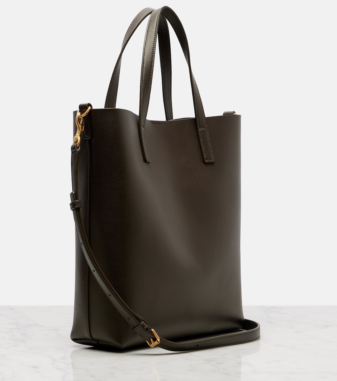 Сумка-тоут Toy Shopping N/S от Saint Laurent из гладкой телячьей кожи украшена тонким тиснением с золотистым логотипом и фирменной подвеской Cassandre. В комплекте съёмный плечевой ремень для универсального использования.