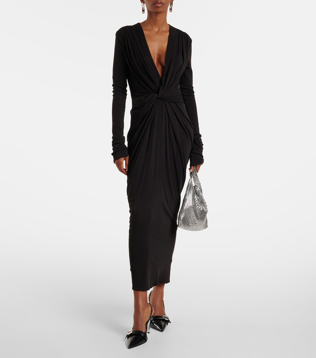Компания Entire Studios разработала каждое изделие, которое прослужит дольше архивов, уделяя особое внимание деталям и заботясь о долговечности. Это макси-платье с длинными рукавами, выполненное из хлопкового трикотажа, отличается элегантным драпированным силуэтом и присборенной талией.