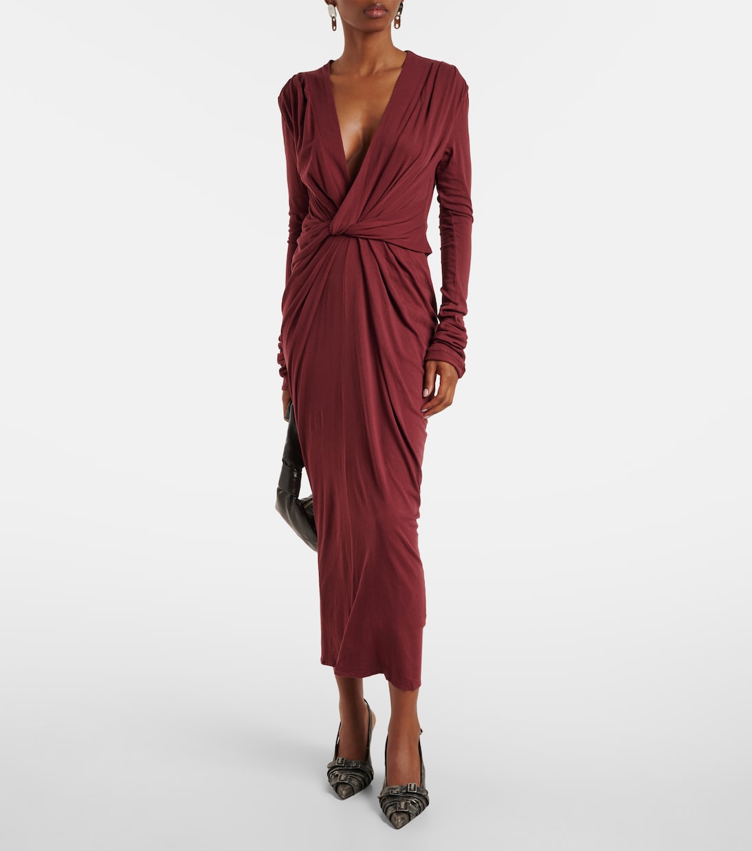 Компания Entire Studios разработала каждое изделие, которое прослужит дольше архивов, уделяя особое внимание деталям и заботясь о долговечности. Это макси-платье с длинными рукавами, выполненное из хлопкового трикотажа, отличается элегантным драпированным силуэтом и присборенной талией.