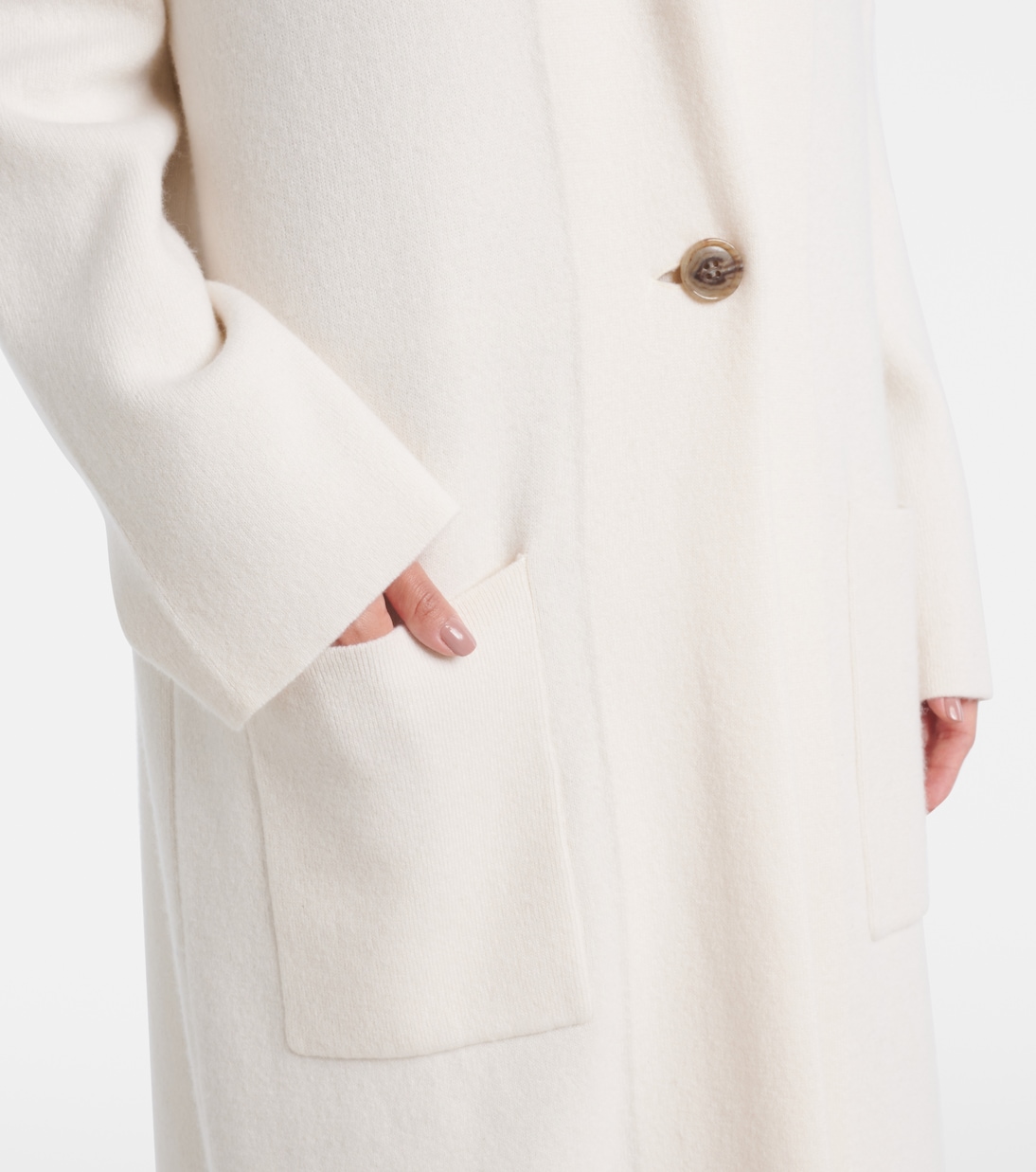 Трикотажные изделия Лизы Ян, разработанные в Стокгольме и произведенные во Внутренней Монголии, черпают вдохновение в скандинавском минимализме и китайском наследии дизайнера. Пальто Amie выполнено из чистого кашемира в минималистичном силуэте и застегивается на одну пуговицу.