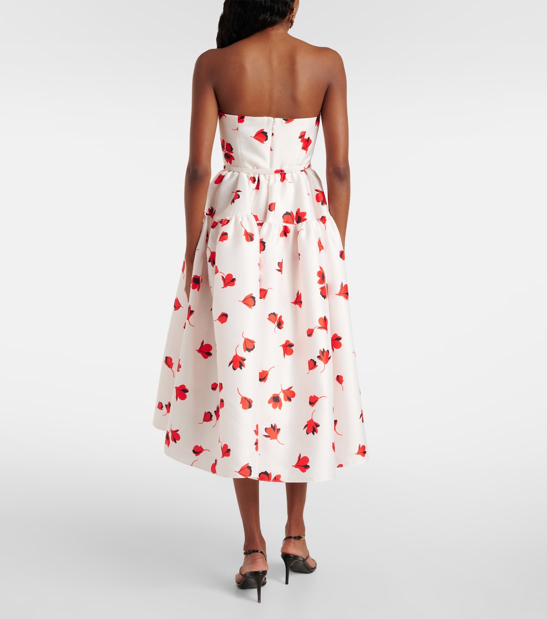Цветочное плиссированное платье миди из тафты Self-Portrait, белый 53 048₽