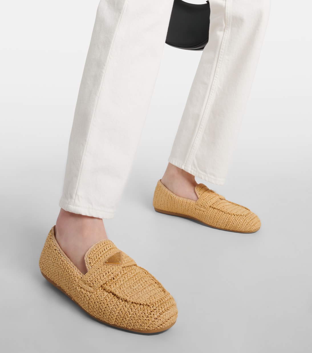 Плетеные лоферы с эффектом рафии Prada, Naturale