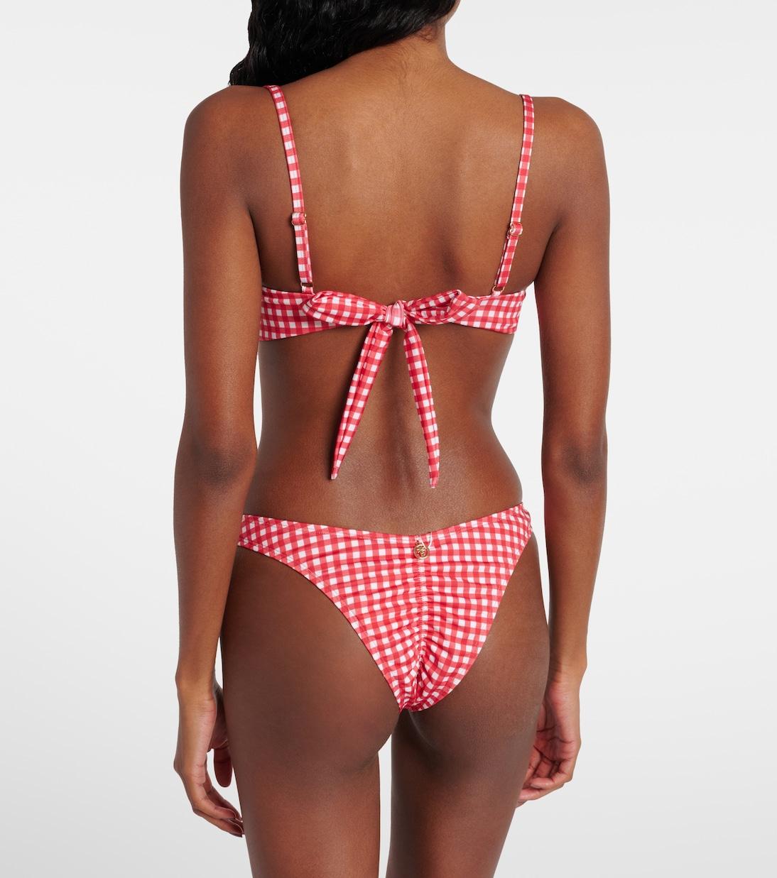 Трусики-бикини Lenny от Bananhot с высоким вырезом выгодно подчеркивают фигуру. Сплошной принт в клетку «гингем» дополнен изящной цветочной вышивкой по центру.