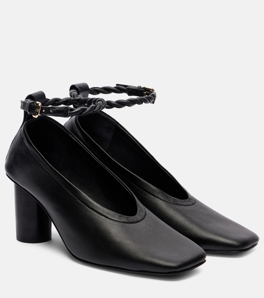Туфли Amos от A.Emery, изготовленные из кожи, с круглым каблуком и перекрученными ремешками на щиколотке. Модель дополнена кожаными стельками и подошвой с квадратным носком.