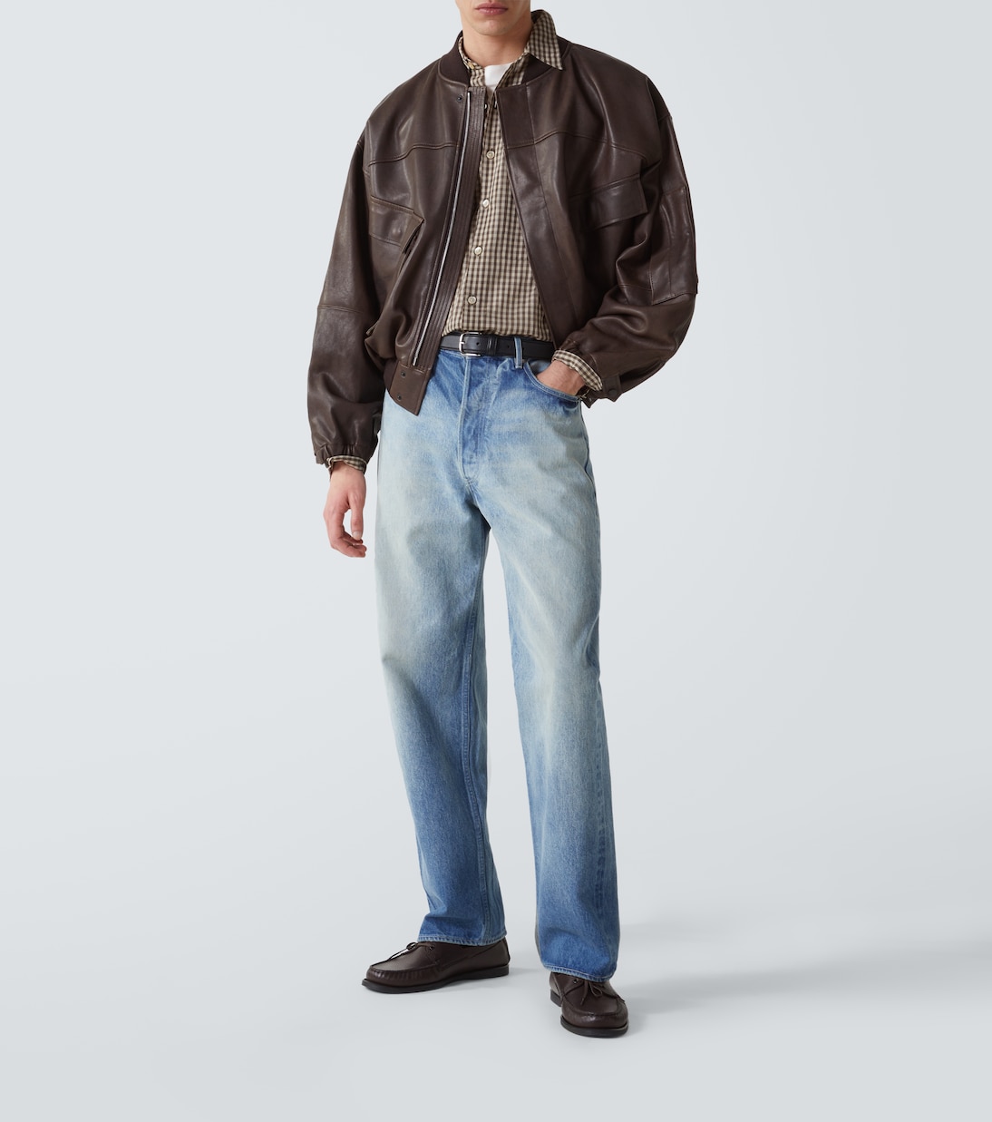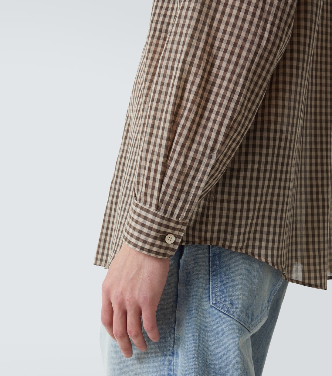 Воздушная рубашка из хлопка в клетку Auralee, Brown Gingham Check