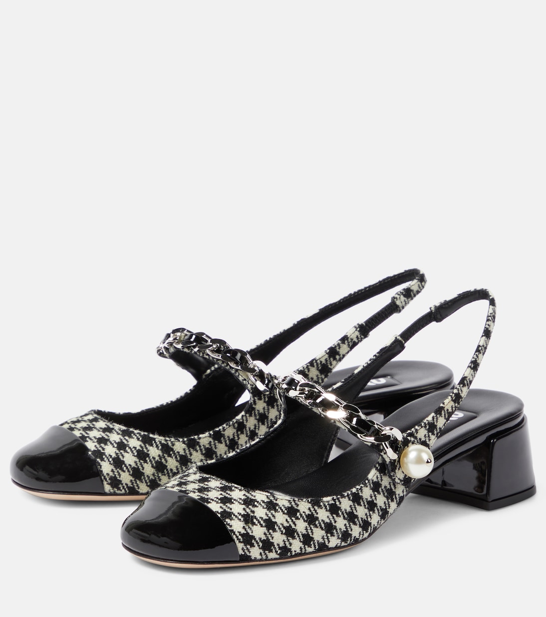 Клетчатые лодочки на ремешке Miu Miu, черный