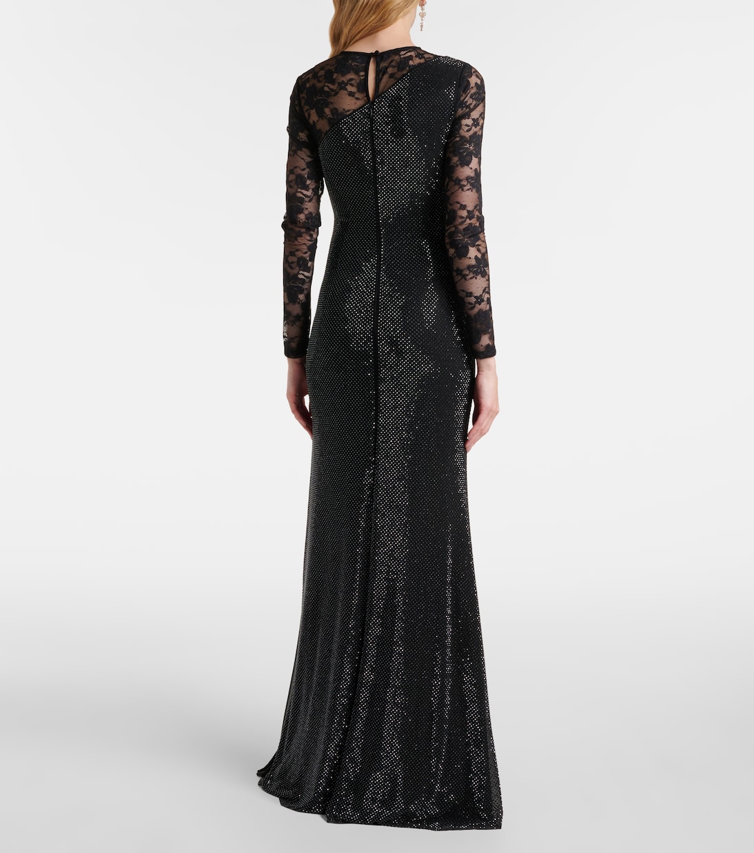 Платье с кружевной отделкой и стразами Self-Portrait, черный 71 880₽
