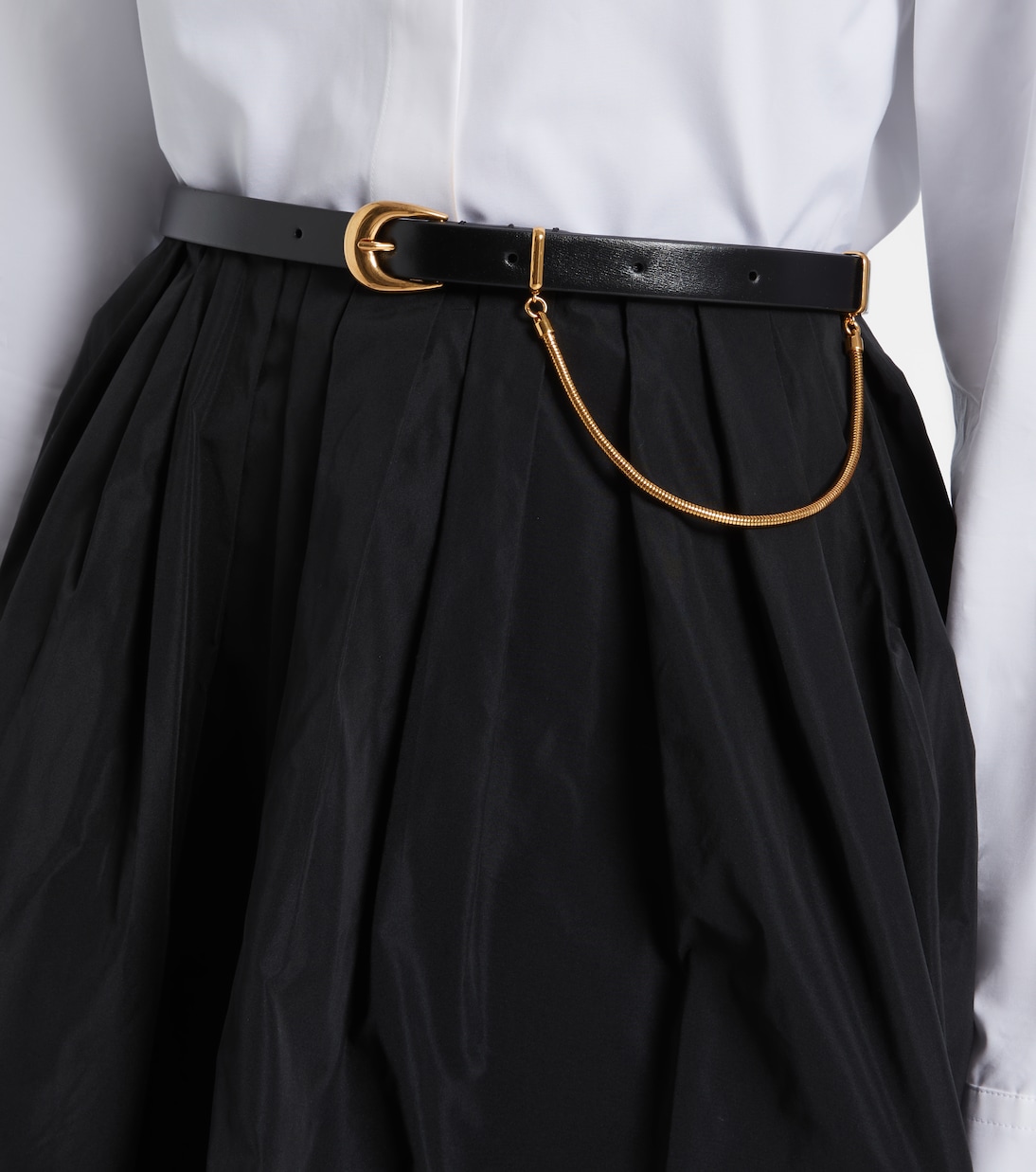 Украсьте свои образы элегантными аксессуарами, такими как ремень Curve от Jil Sander. Этот ремень из мягкой кожи дополнен золотистой цепочкой.