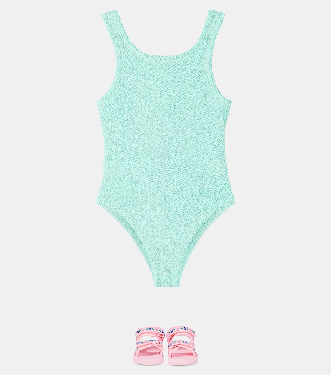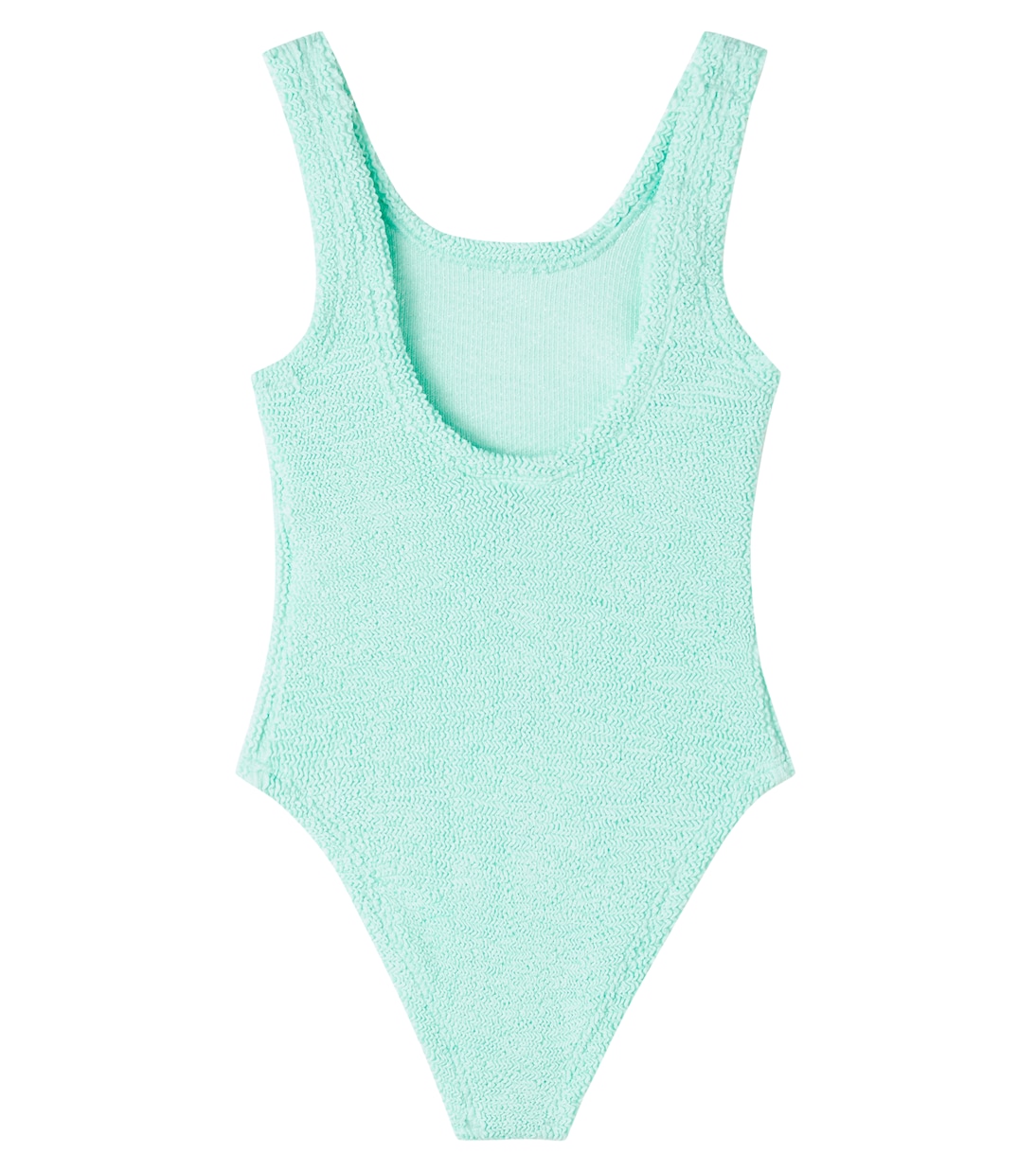 Фирменная жатая ткань Hunza G Kids обеспечивает максимальную вентиляцию и комфорт малышам в жаркие дни. Этот купальник яркого мятного оттенка подходит детям от 7 до 12 лет.