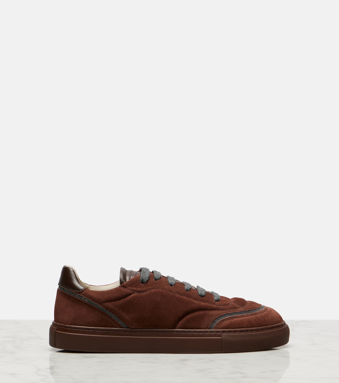 Фирменная цепочка Мониль от Brunello Cucinelli выполнена из латуни без содержания никеля, огранённой для создания сверкающего эффекта и вручную прикрепленной к каждому изделию. На этих кроссовках украшение выполнено в виде декоративных изогнутых линий.