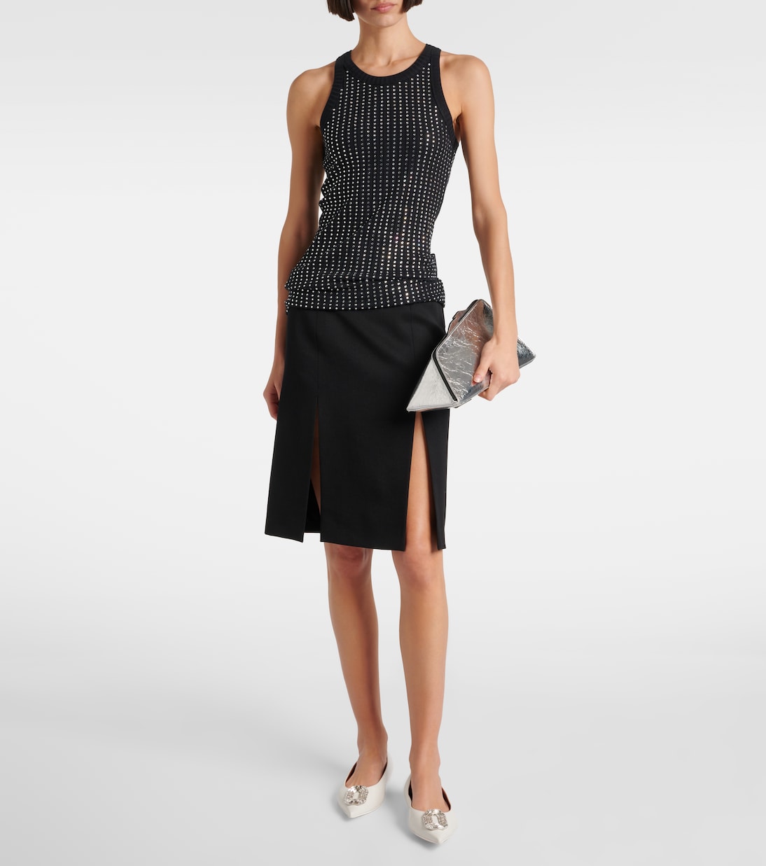 Amina Muaddi быстро стала фаворитом моды благодаря своей эффектной и скульптурной обуви. Балетки Camelia, изготовленные в Италии из кожи, украшены прямоугольными зеркальными деталями спереди.