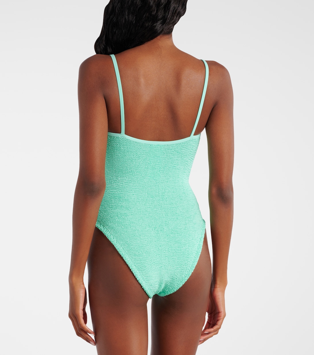 Купальник Pamela от Hunza G с глубоким вырезом и изящными бретельками идеально подходит для пляжа или отдыха у бассейна. Модель изготовлена по фирменной технологии Seamless Crinkle, что делает её универсальной.