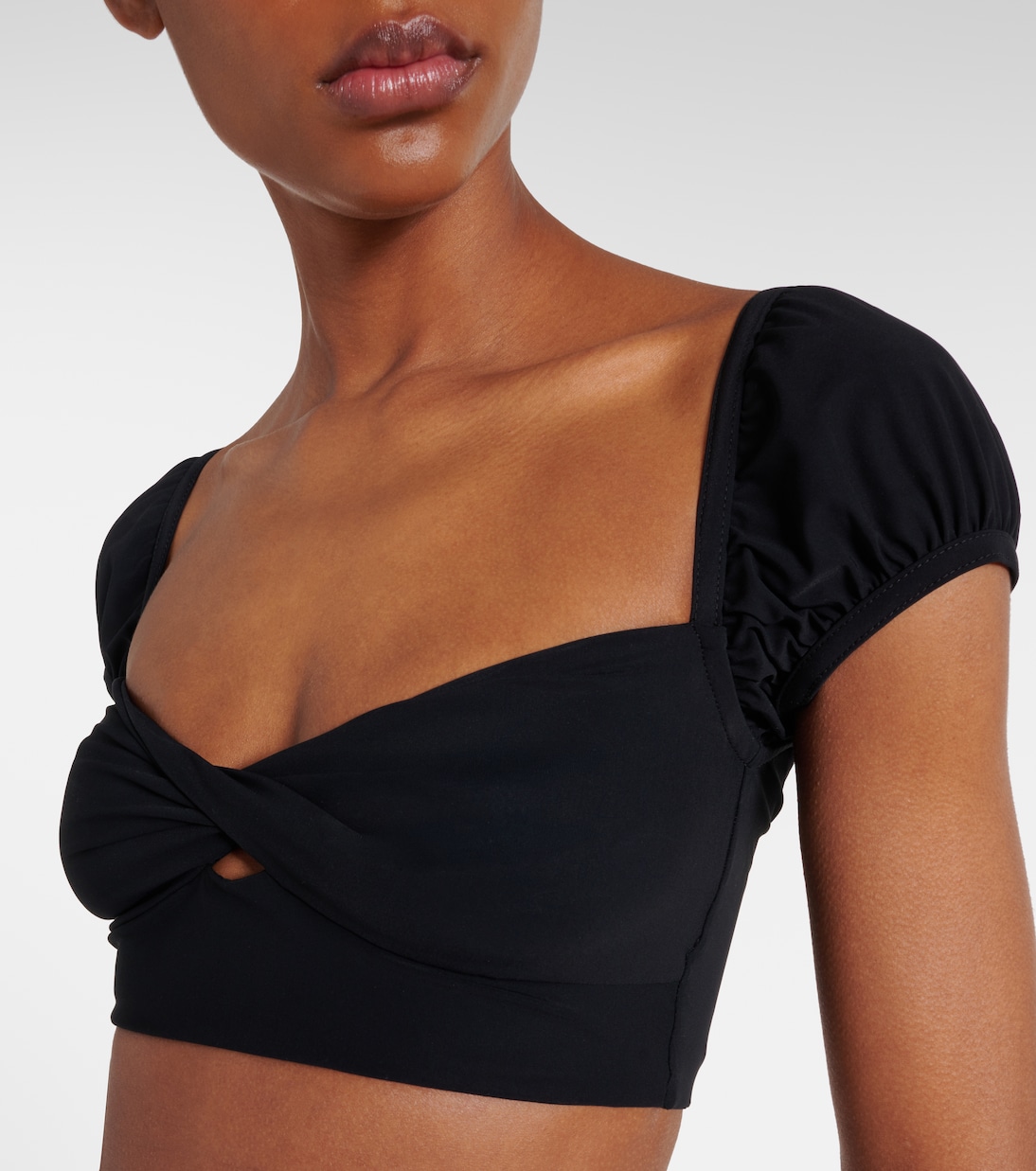 Купальники Karla Colletto сшиты из лучших тканей с использованием инновационных технологий производства и опыта кроя. Модель Ventana, напоминающая укороченный топ, отличается игривым дизайном с рукавами-фонариками, вырезом в форме сердечка и небольшим вырезом.