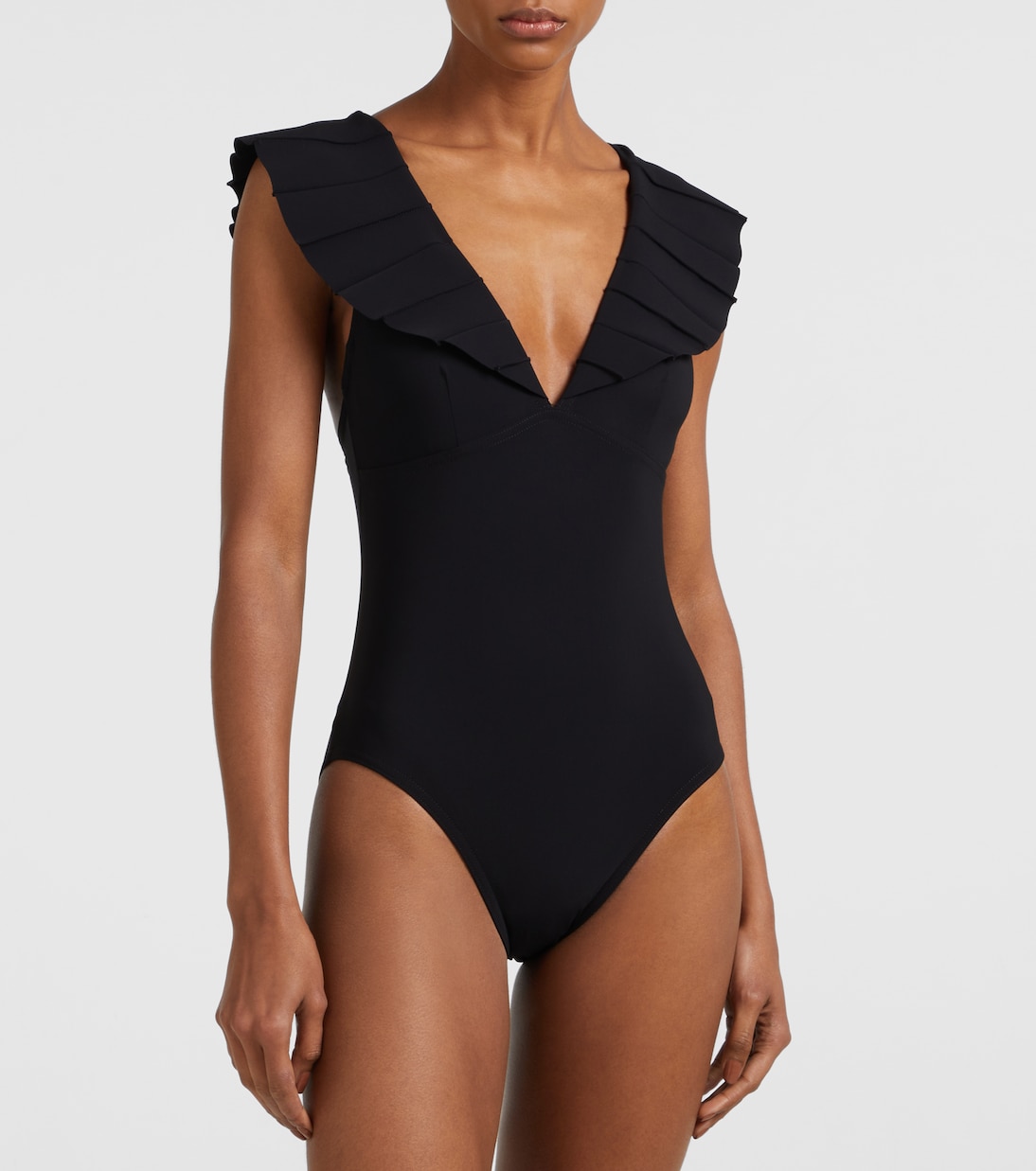 Купальники Karla Colletto шьются из лучших тканей с использованием инновационных технологий производства и опыта пошива. Купальник Alora этого бренда с глубоким вырезом и изящными оборками обеспечивает умеренную защиту и поддержку груди на косточках.