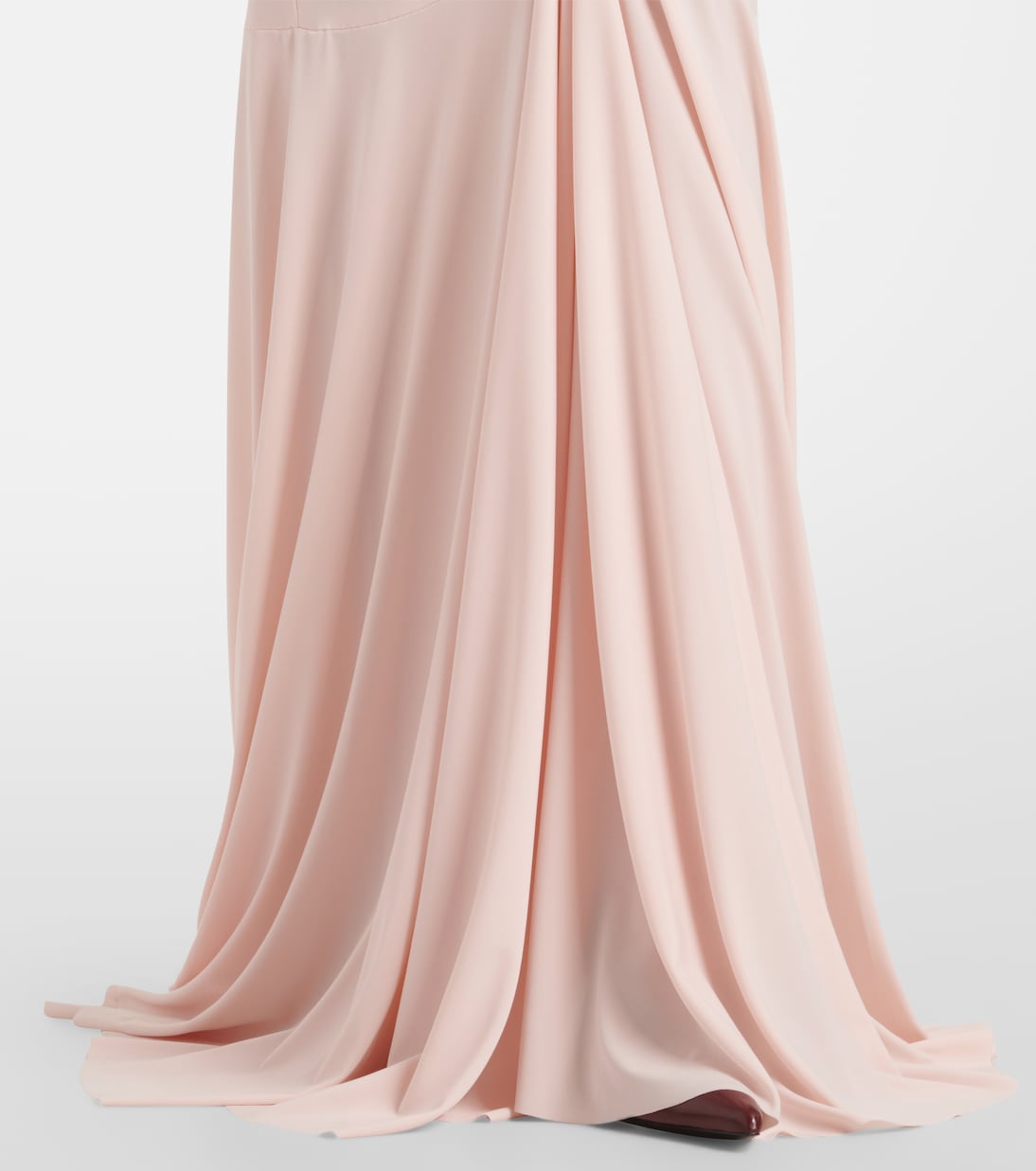 Фирменный крой Norma Kamali с рюшами позволяет силуэтам элегантно драпироваться по фигуре. Яркий пример — это платье с подолом «рыбий хвост» и соблазнительным силуэтом без бретелек.