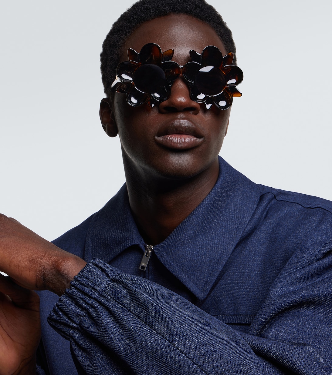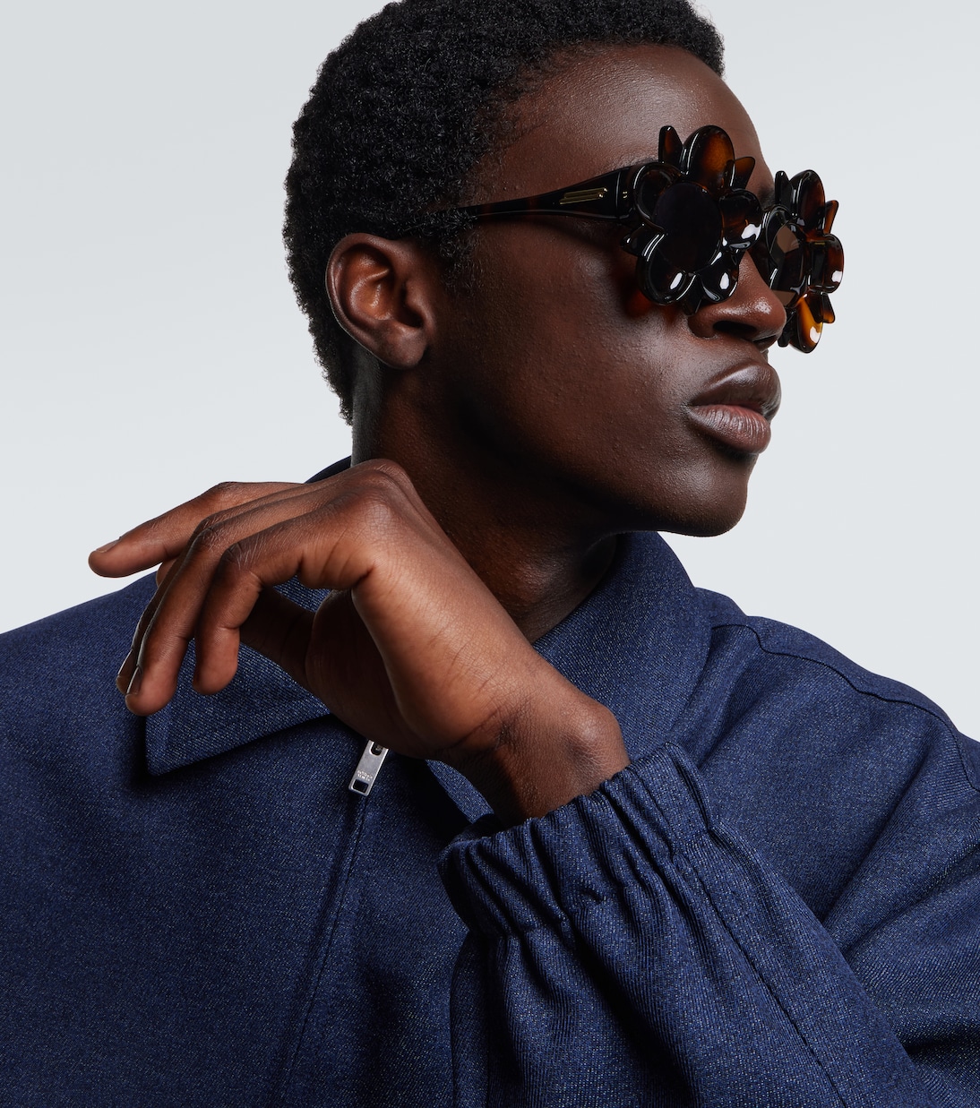 Bottega Veneta вдохновляет на индивидуальность и новые способы мастерства с 1966 года. Солнцезащитные очки Peggy Flower имеют форму, вдохновленную флорой, круглые коричневые линзы и золотистые акценты.