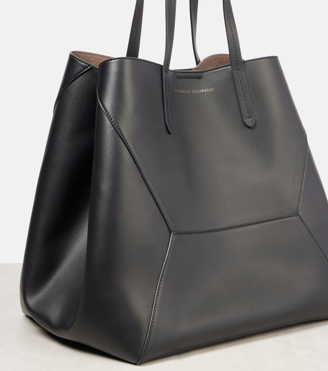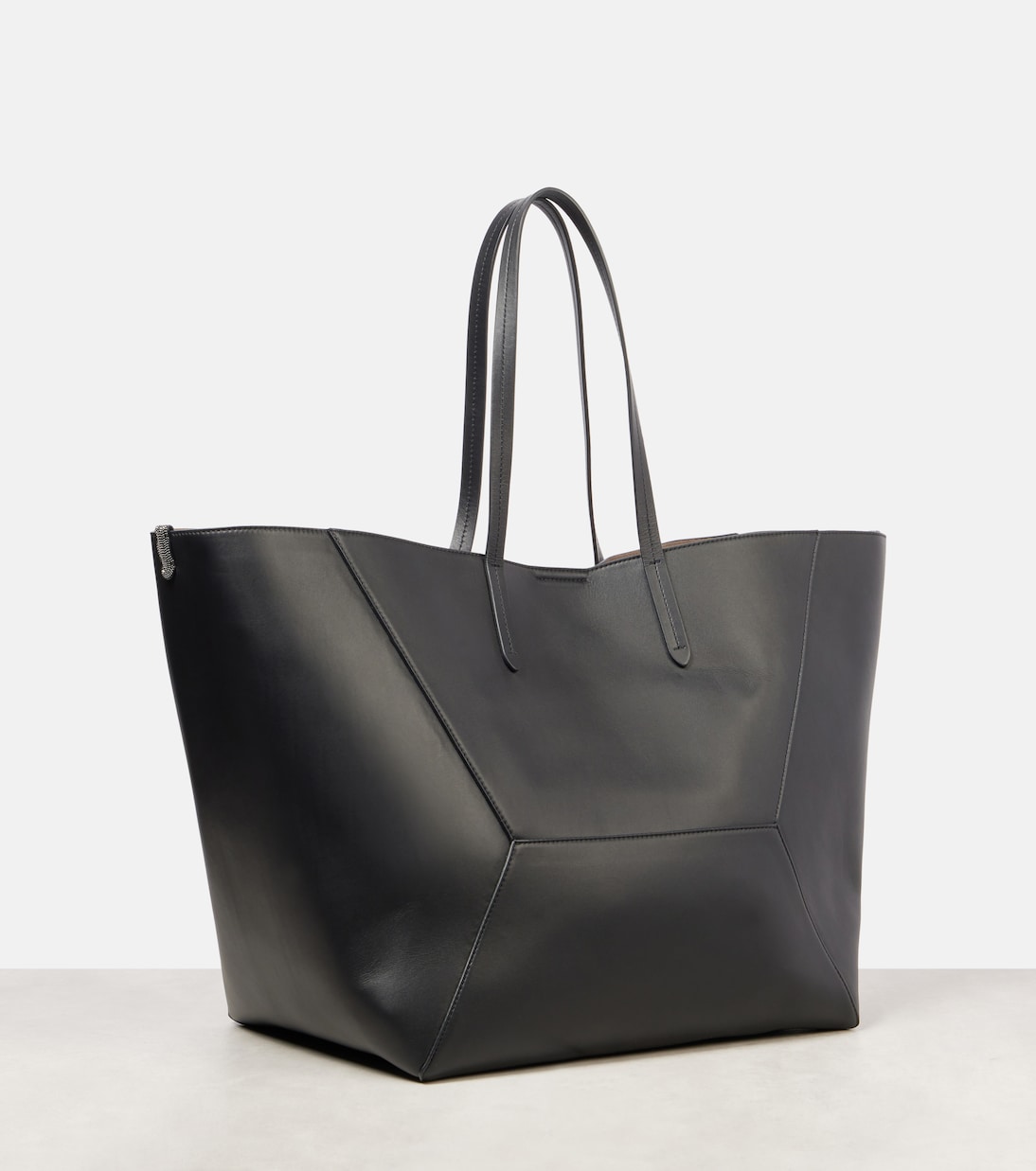 Brunello Cucinelli переосмысливает повседневную сумку-тоут BC Duo из мягкой кожи с геометрическим силуэтом. Эта большая модель отличается минималистичными линиями, подчеркнутыми выразительной строчкой и отделкой в виде цепочки Монили, придающей ей фирменный штрих.