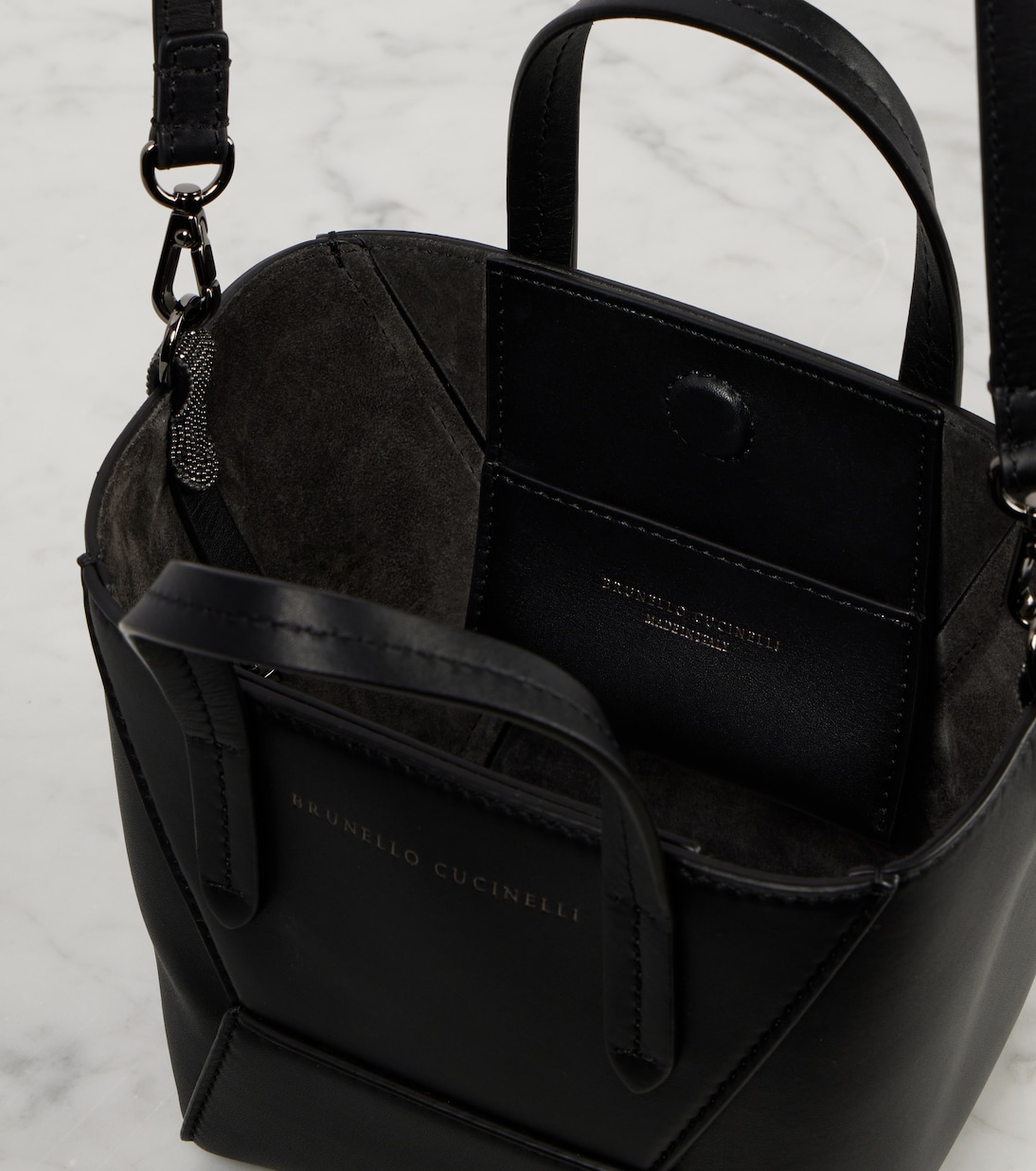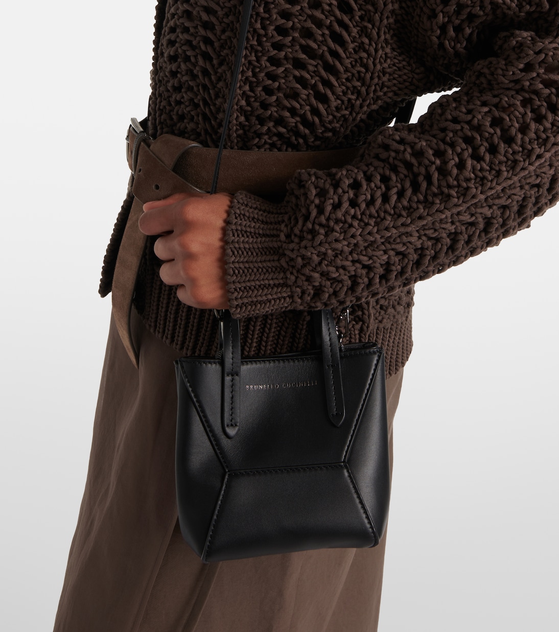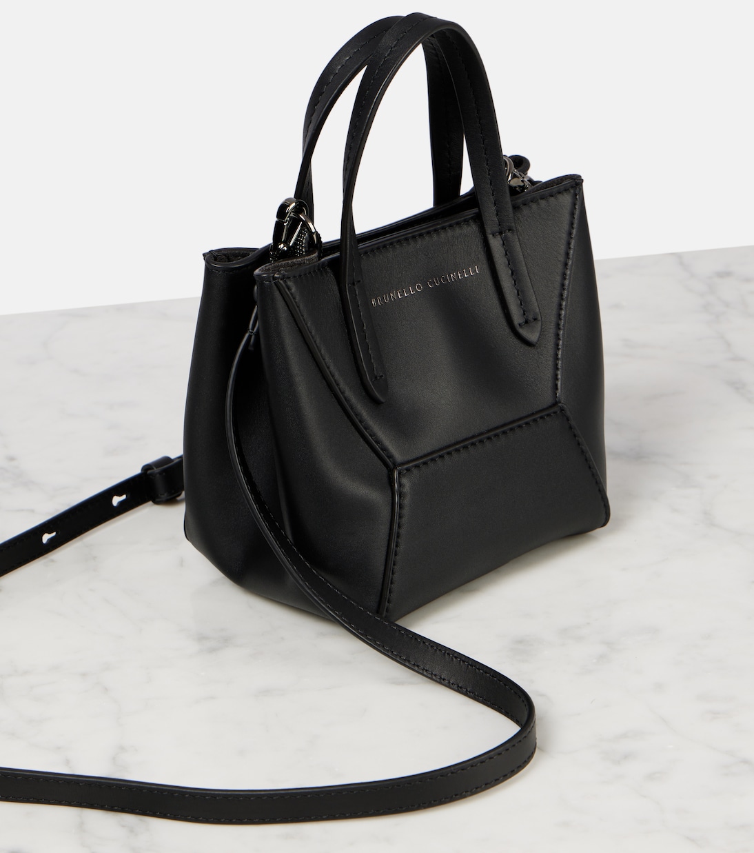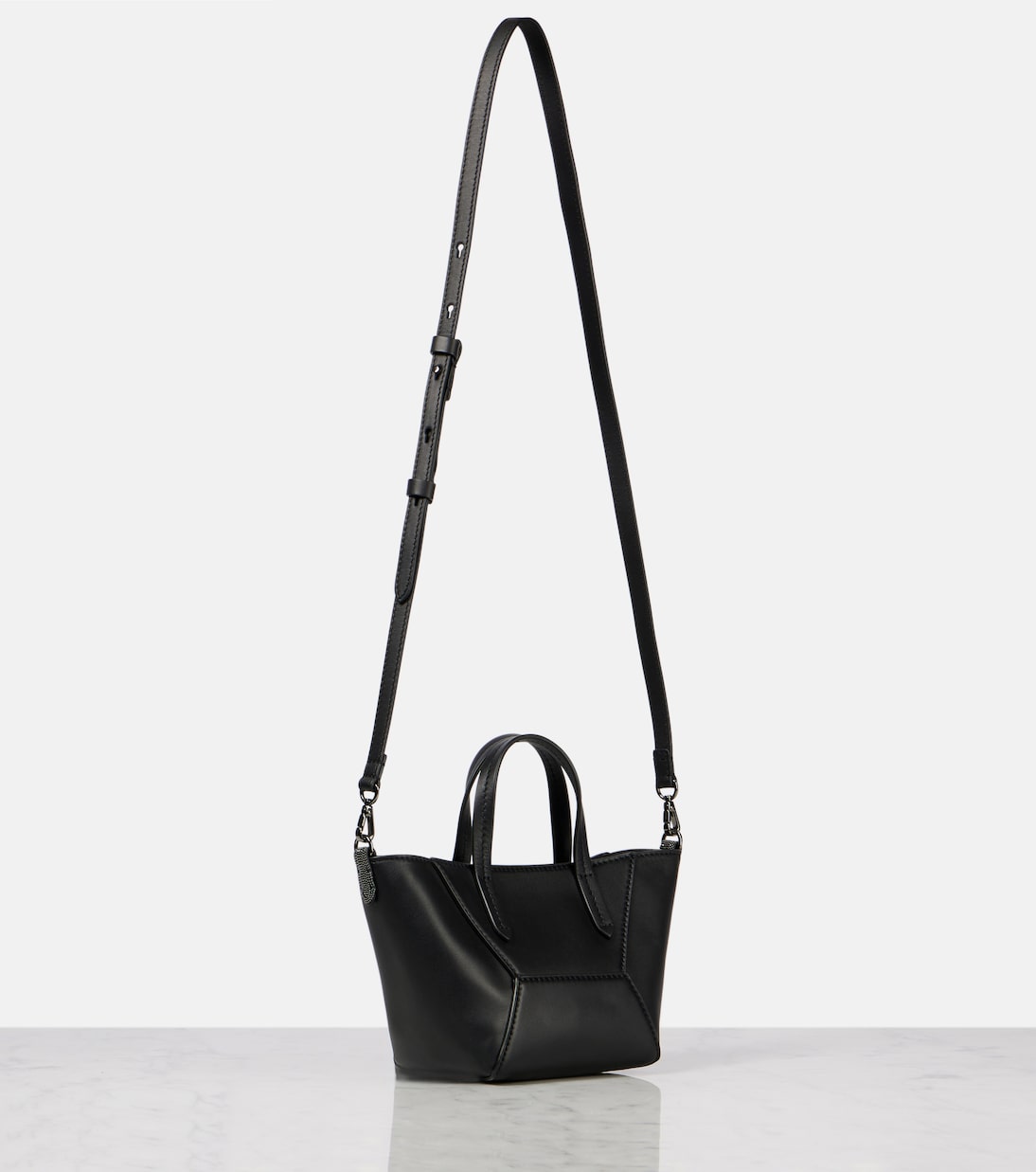 Brunello Cucinelli переосмысливает повседневную сумку-тоут BC Duo из мягкой кожи с геометрическим силуэтом. Эта модель Mini отличается минималистичными линиями, подчеркнутыми выразительной строчкой и отделкой в виде цепочки Монили, придающей ей фирменный штрих.
