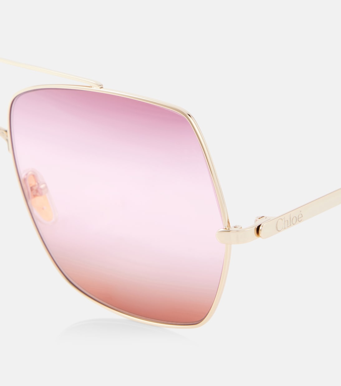Квадратные солнцезащитные очки Aly Chloé, Gold-Gold-Red