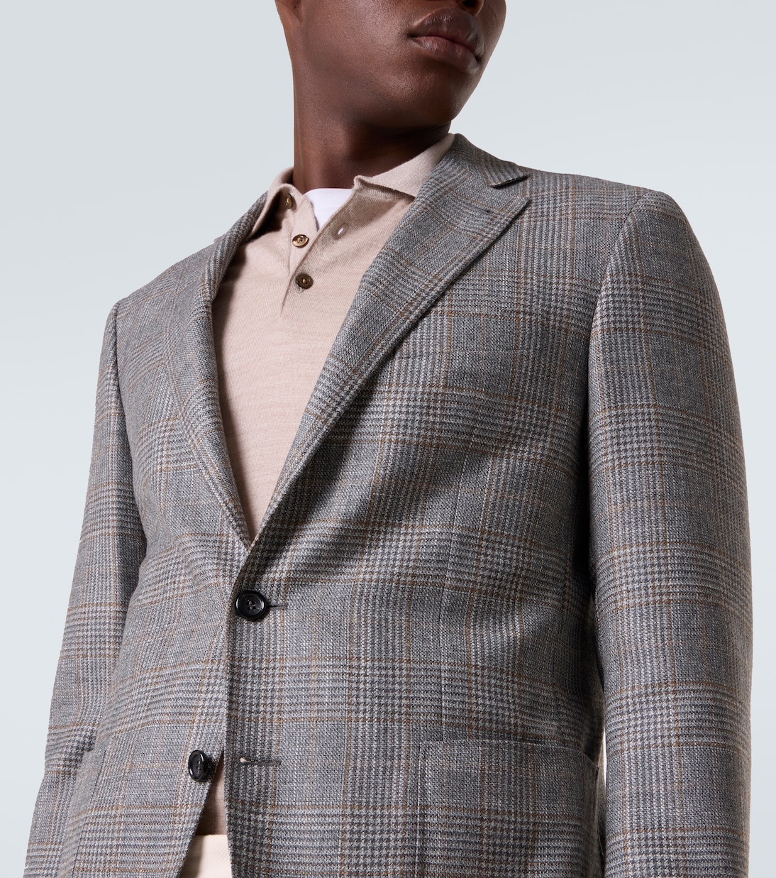 Canali — синоним бескомпромиссного качества и вневременной элегантности, предлагая безупречно скроенные наряды. Этот однобортный пиджак, выполненный из шерсти, шёлка и кашемира, имеет классический клетчатый узор.