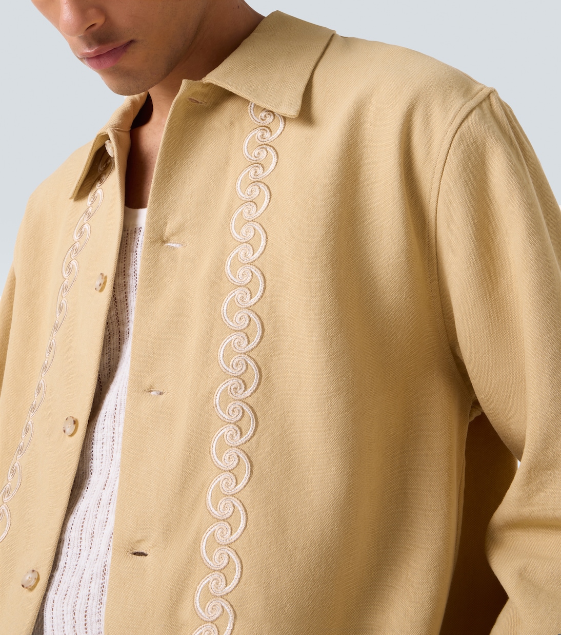 Commas — ваш выбор изысканных базовых вещей, которые идеально сочетают в себе мастерство и современную простоту. Эта рубашка на пуговицах изготовлена из Tencel, льна и хлопка и украшена изысканной вышивкой спереди.