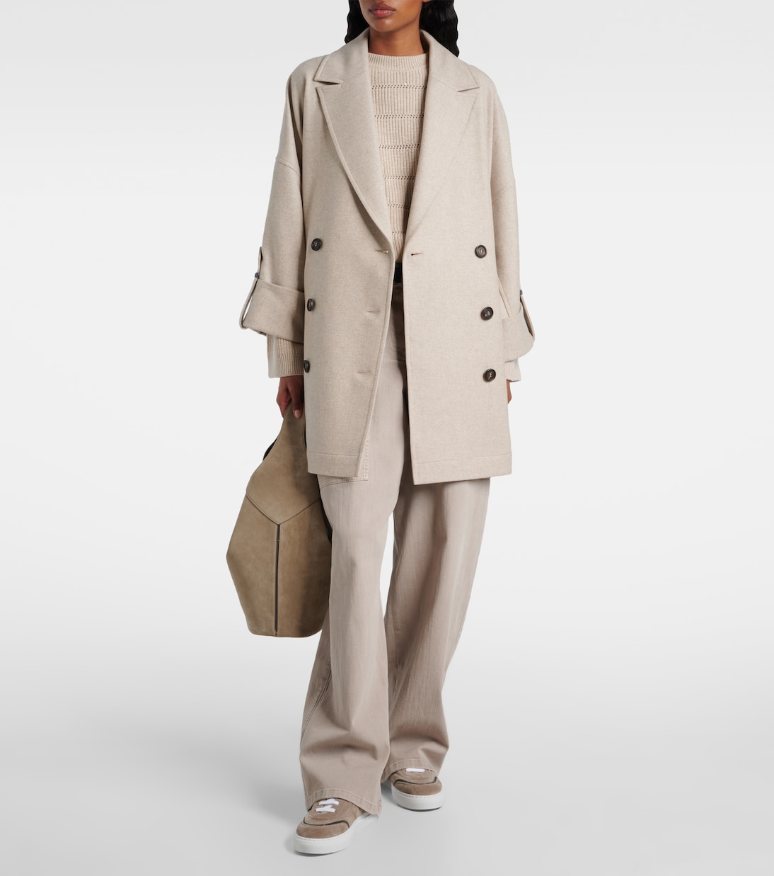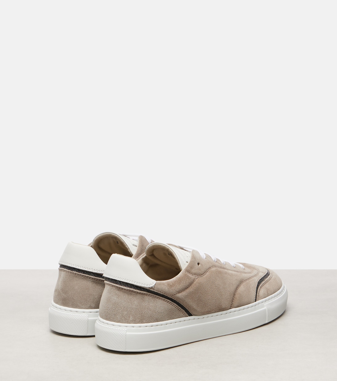 Цвет Monili выполнен из латуни без содержания никеля, огранённой для создания сверкающего эффекта и вручную закрепленной на каждом изделии. Эти кроссовки Brunello Cucinelli изготовлены из мягкой замши и украшены фирменной отделкой на отделке и контрастных шнурках.