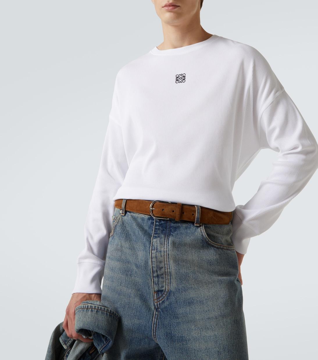 Логотип Anagram мгновенно узнаваем на любой вещи Loewe. Эта футболка с длинными рукавами, изготовленная из хлопка в рубчик, украшена вышитым на груди культовым символом.