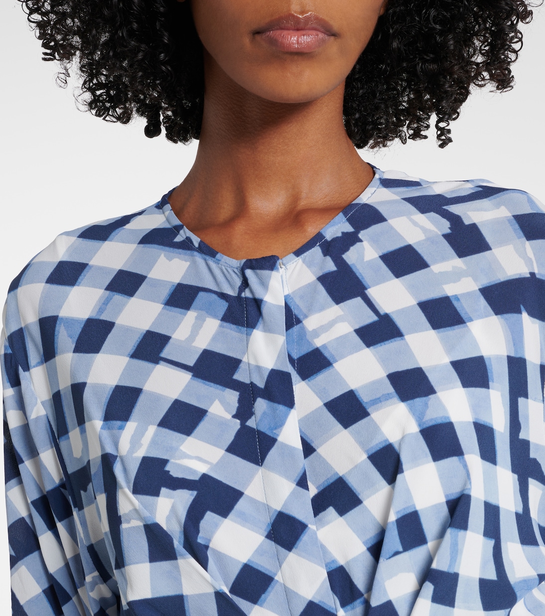 Черпая вдохновение в современном искусстве, Proenza Schouler гарантирует, что каждый дизайн оставит неизгладимое впечатление. Это платье миди со сборкой на талии и очаровательным клетчатым принтом по всей поверхности.