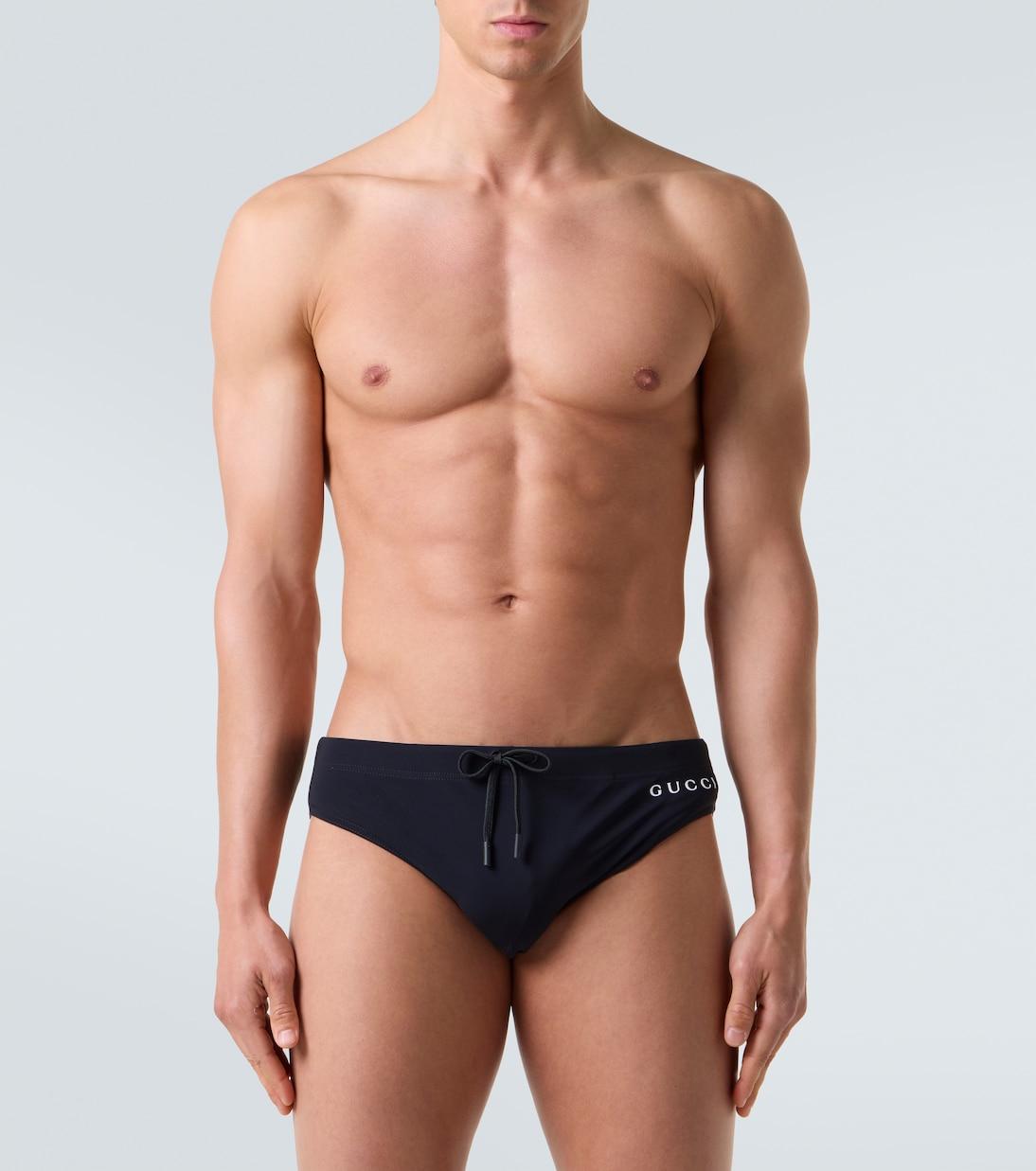 Логотип Gucci придаёт этому классическому силуэту неповторимый штрих. Эти плавки-слипы изготовлены в Италии и имеют эластичный пояс на шнурке.