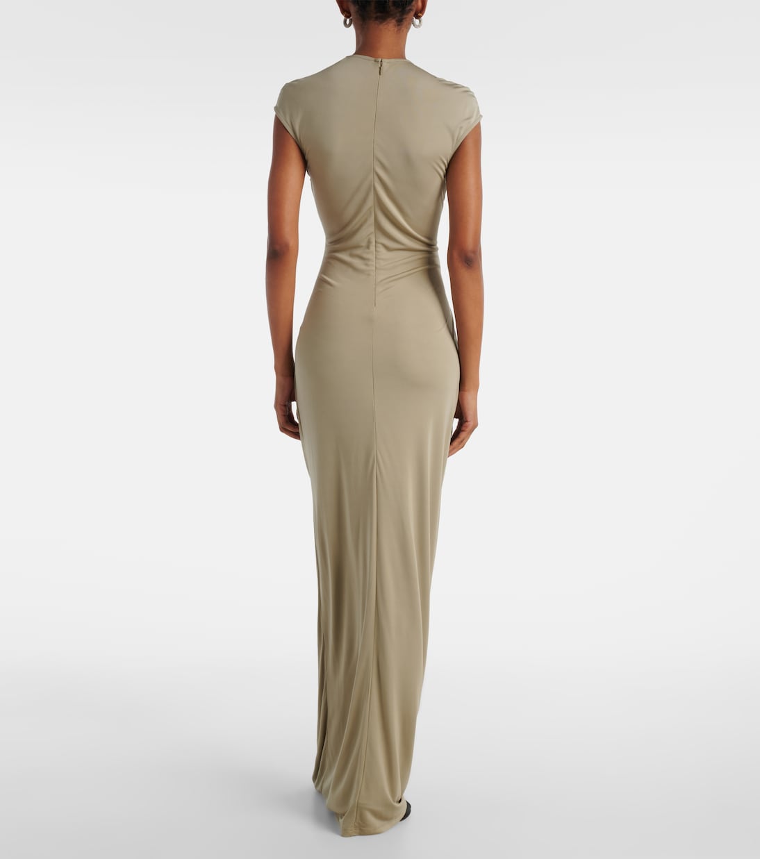 Чувственный крой и скульптурная фурнитура Кристофера Эсбера создают современную интерпретацию минимализма. Макси-платье Duo Bezel Quartz выполнено из джерси и отличается эффектным вырезом спереди, элегантной драпировкой и фирменными украшениями в виде блёсток.