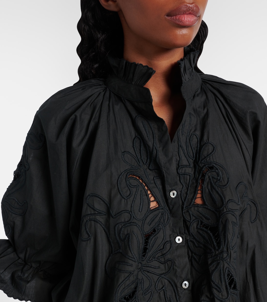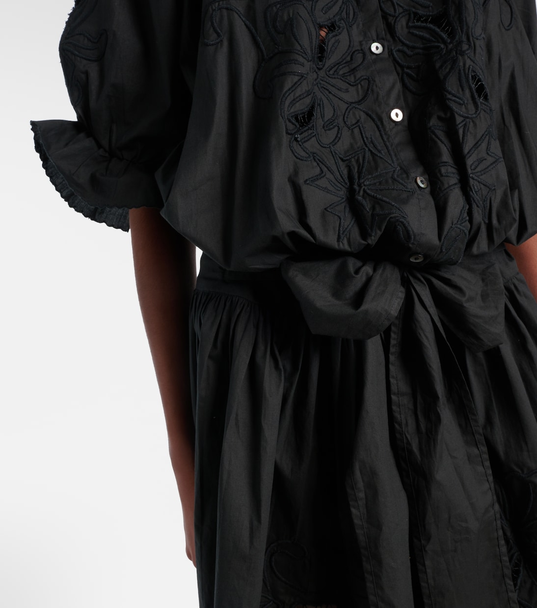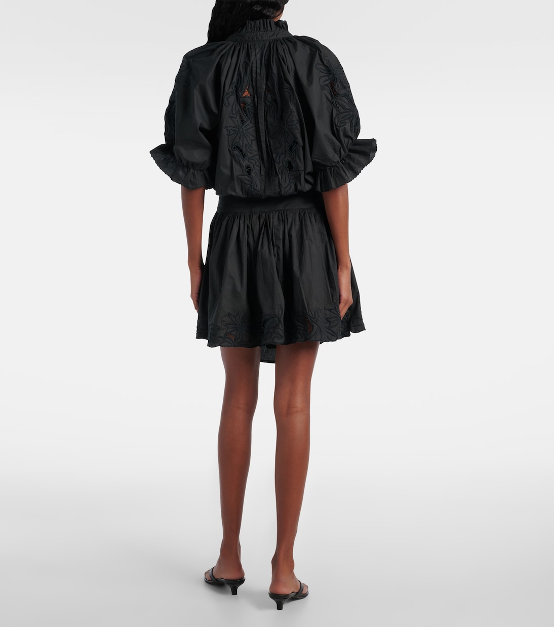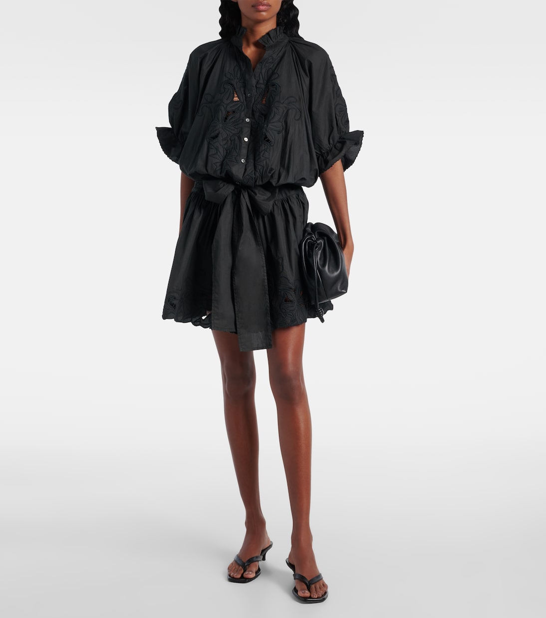 Лондонский дизайнер Джульет Данн использует традиционные техники, такие как набивка, зеркальная гравировка и вышивка, для создания своих моделей. Это мини-платье выполнено из хлопкового поплина с вышитыми вырезами.