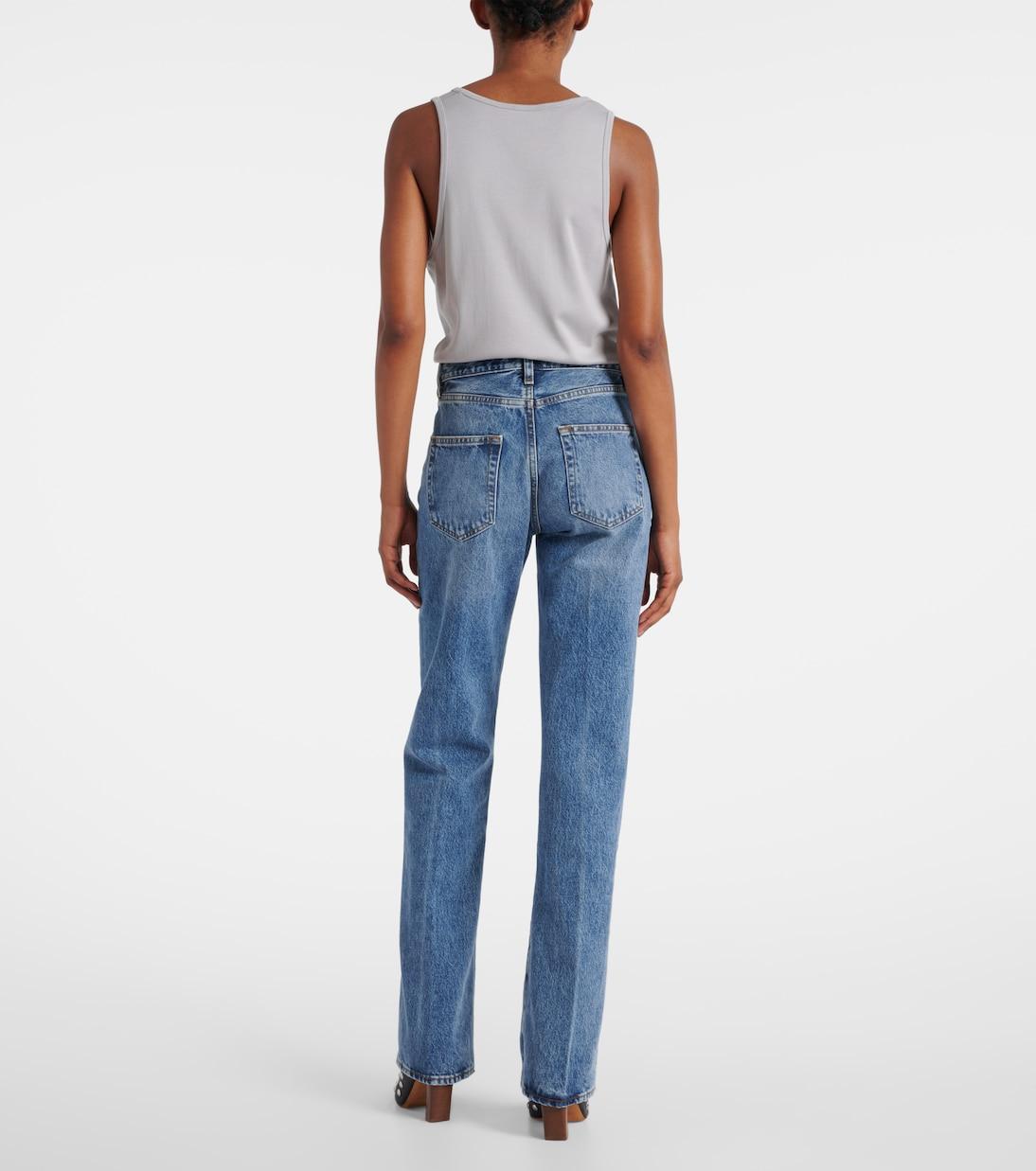 Frame создает культовые джинсовые модели, используя честные методы производства и материалы из экологически чистых источников. Вертикальные прямые джинсы отличаются высокой посадкой и пятью карманами.