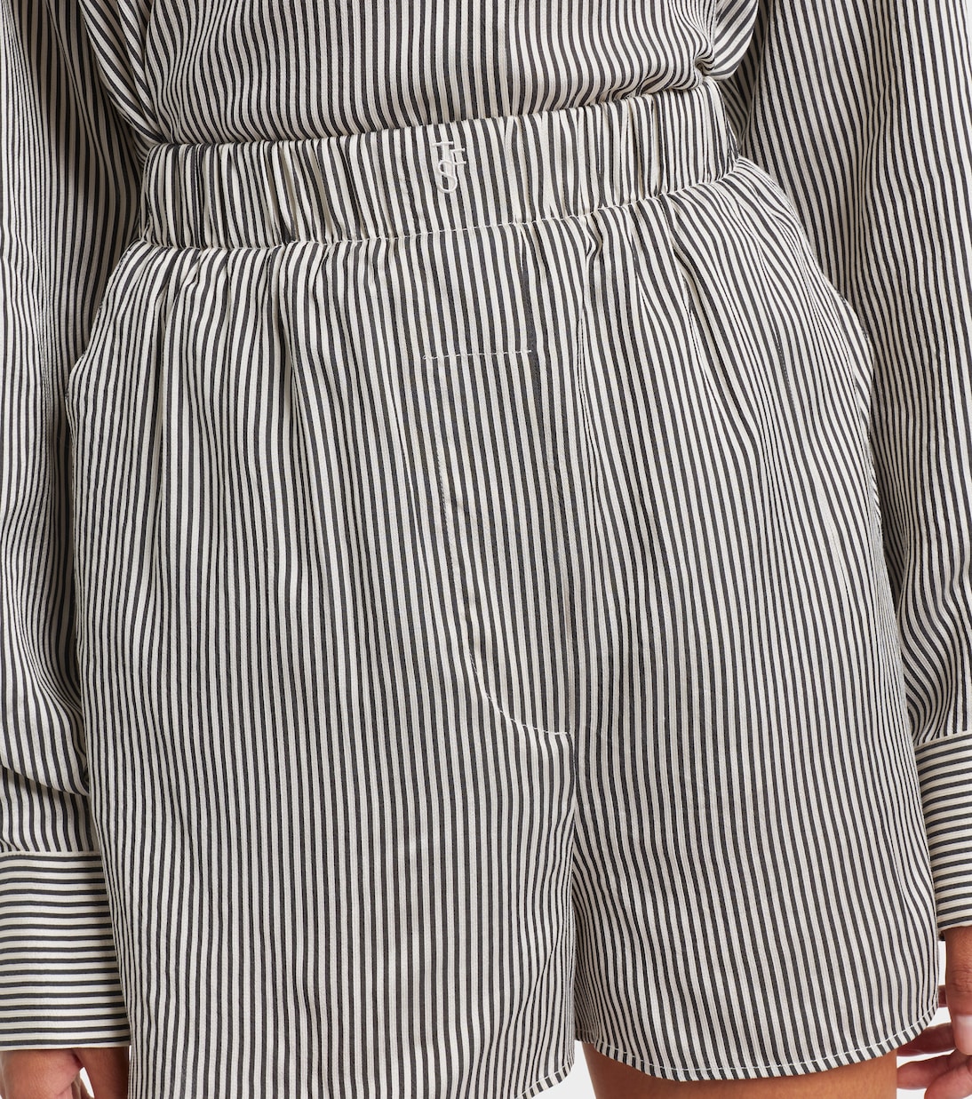 Frankie Shop покорил сердца модниц своими лёгкими и эффектными базовыми вещами. Шорты Lui сшиты из струящейся полосатой ткани и имеют эластичный пояс.