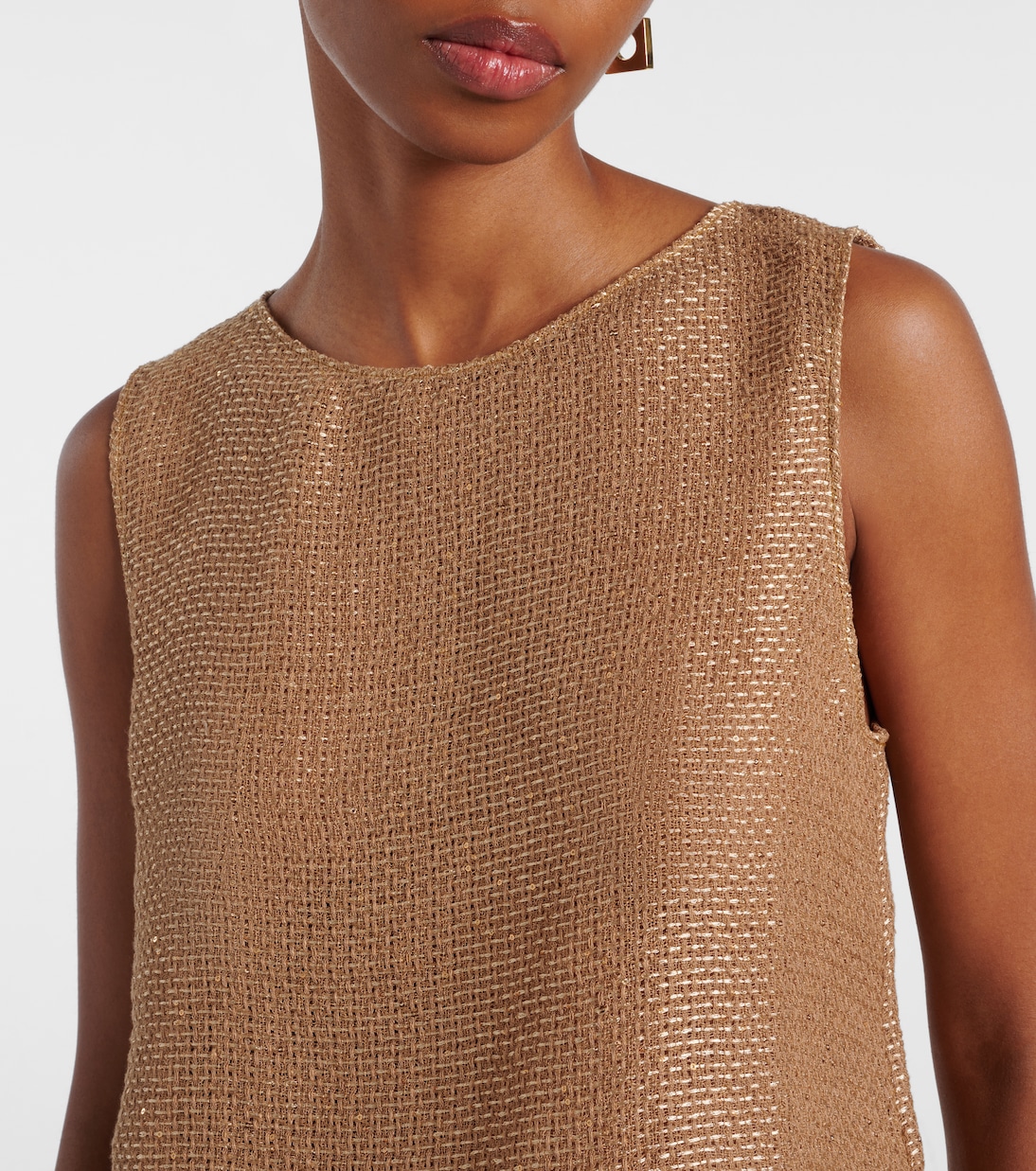 Майка Stella от Leset, выполненная из льняной ткани, укороченного кроя. Модель полностью расшита переливающимися пайетками.