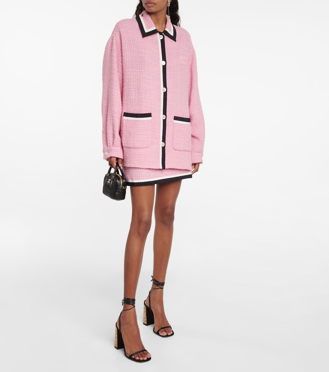 Элегантные босоножки Miu Miu украсят любой праздничный образ. Они изготовлены из атласа и кожи, а их удобный блочный каблук украшен ослепительными стразами.