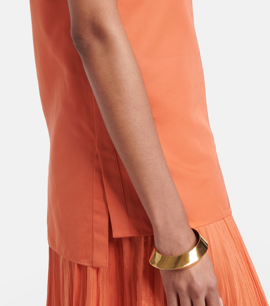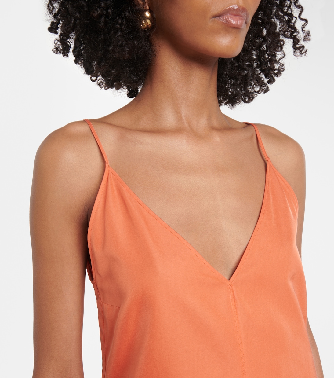 Joseph, известный своим сдержанным, но изысканным подходом к дизайну, предлагает основу для вашего гардероба. Топ Aragon классического силуэта выполнен из хлопка и шёлка, имеет свободный крой, разрезы по бокам и тонкие бретельки.