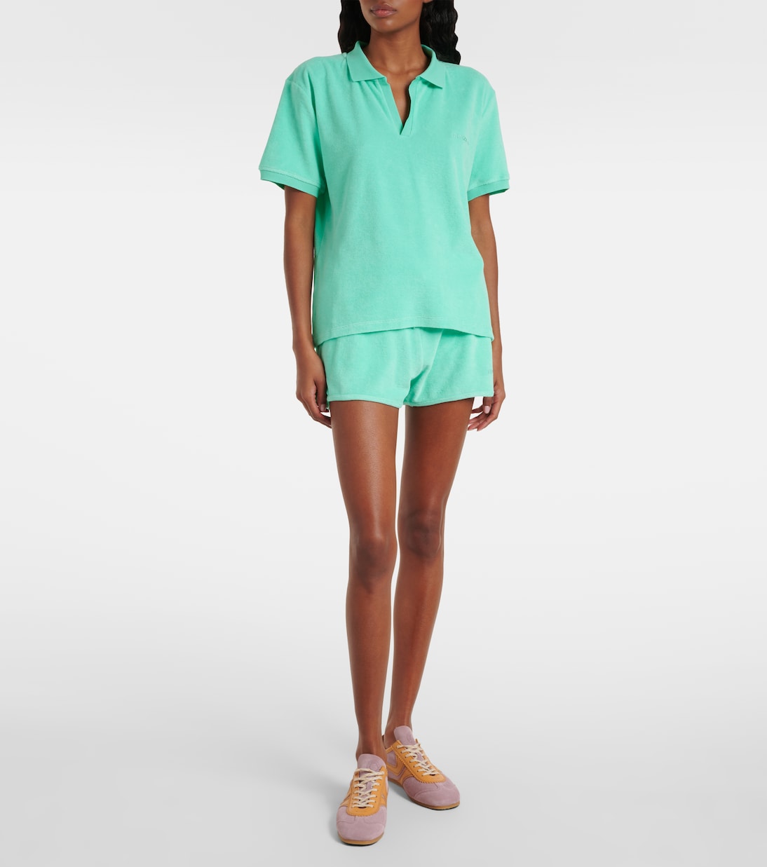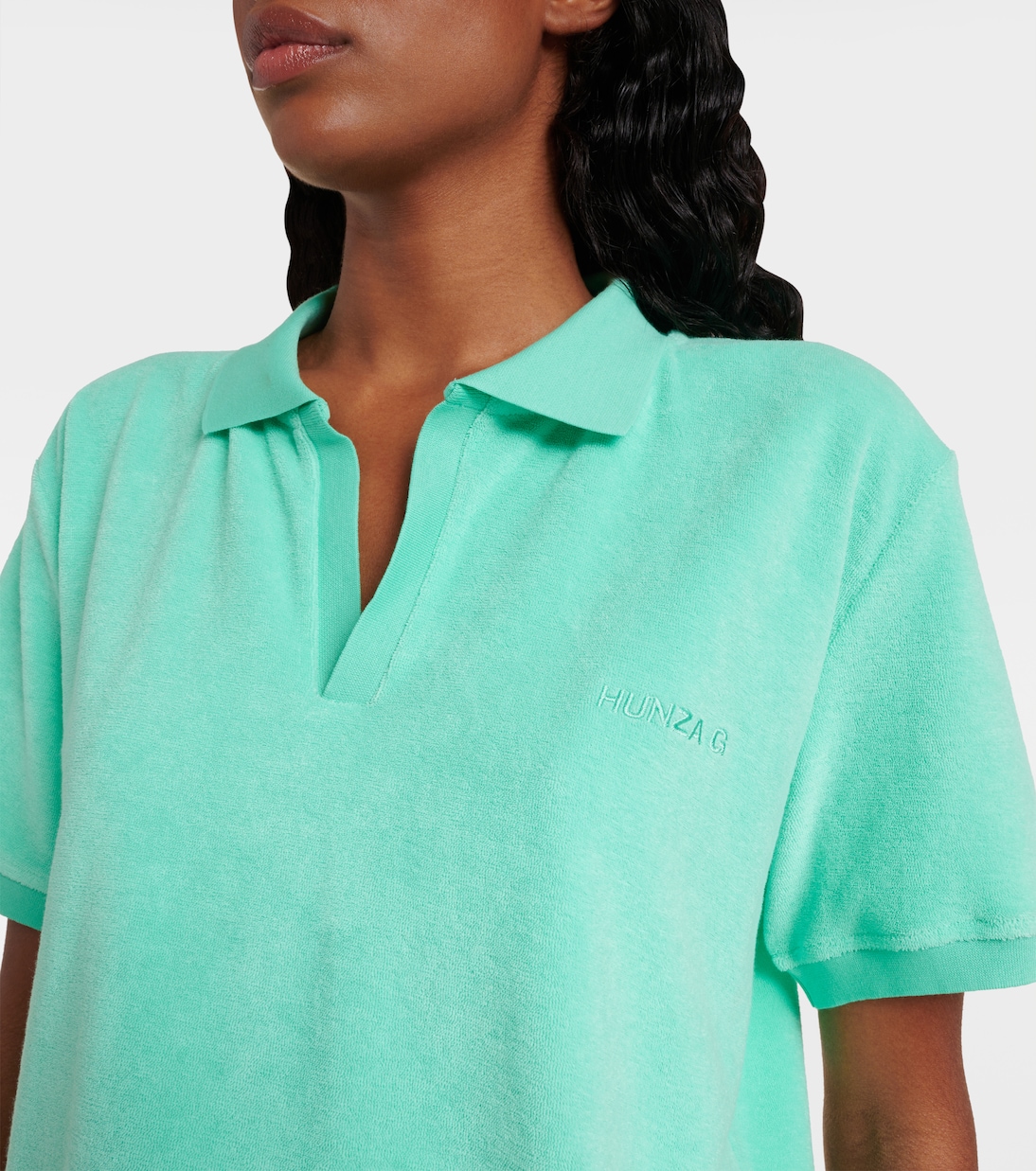 Мастерство Hunza G в производстве одежды для отдыха прослеживается в каждой вещи. Эта рубашка-поло сшита из мягкой мятно-зелёной махровой хлопковой ткани с открытым воротником и вышитым логотипом в центре.