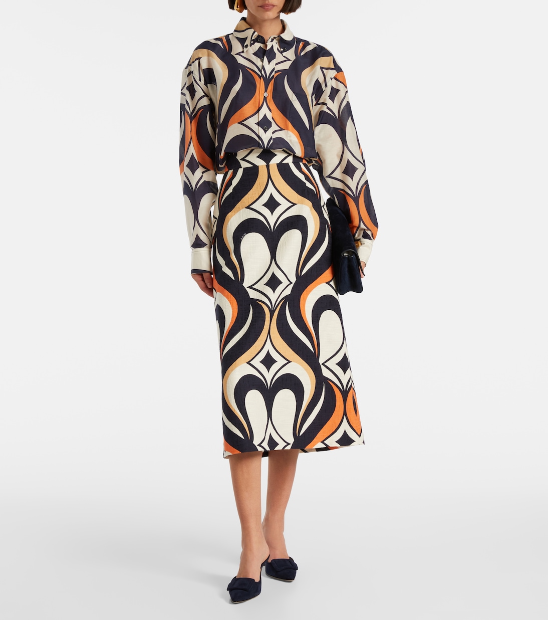 La DoubleJ сотрудничает с ведущими миланскими производителями текстиля, воплощая архивные узоры в своих фирменных эклектичных моделях. Рубашка Better Than Your Boyfriend из хлопка и шёлка имеет слегка свободный силуэт и украшена фирменным принтом Jive.