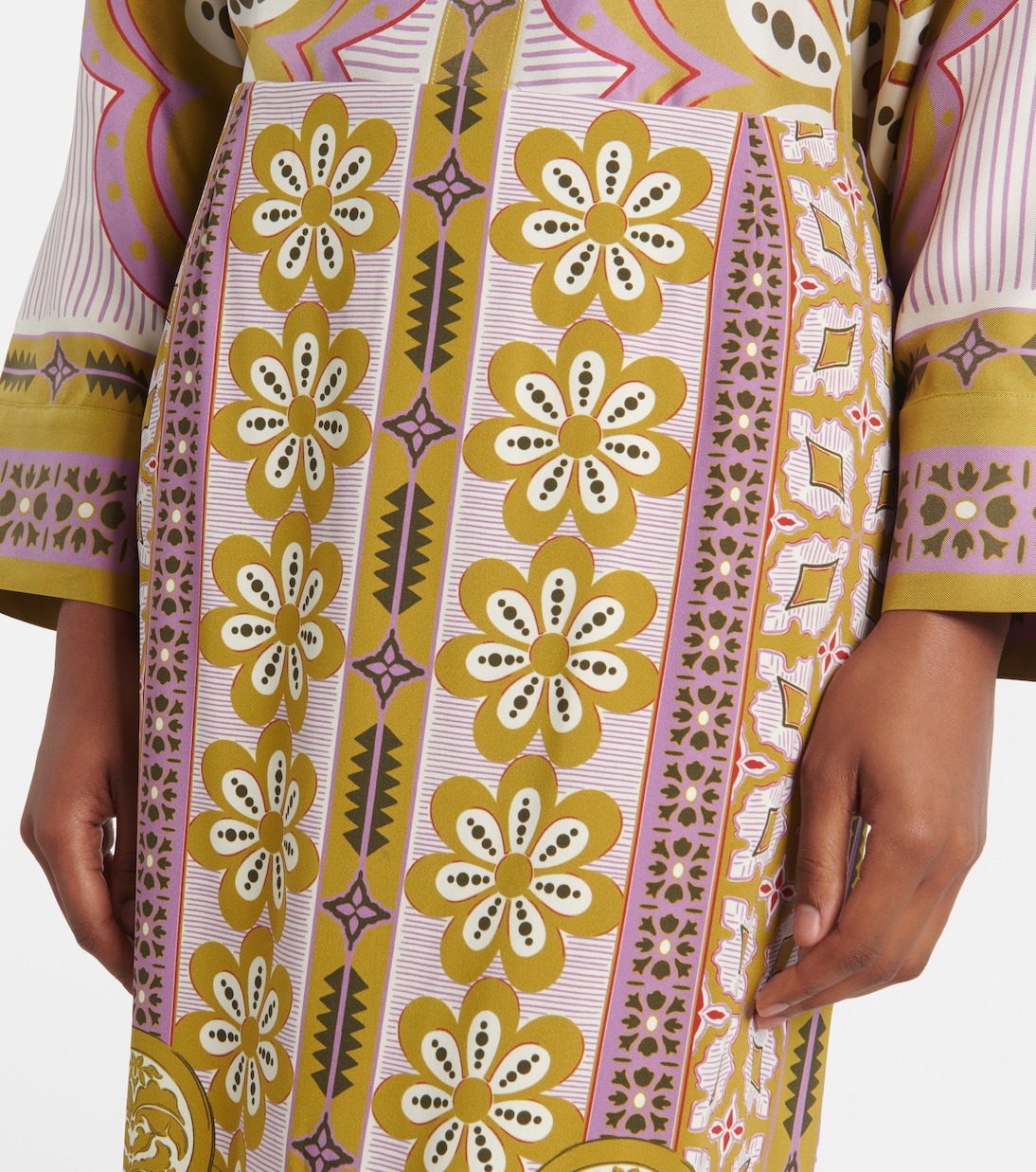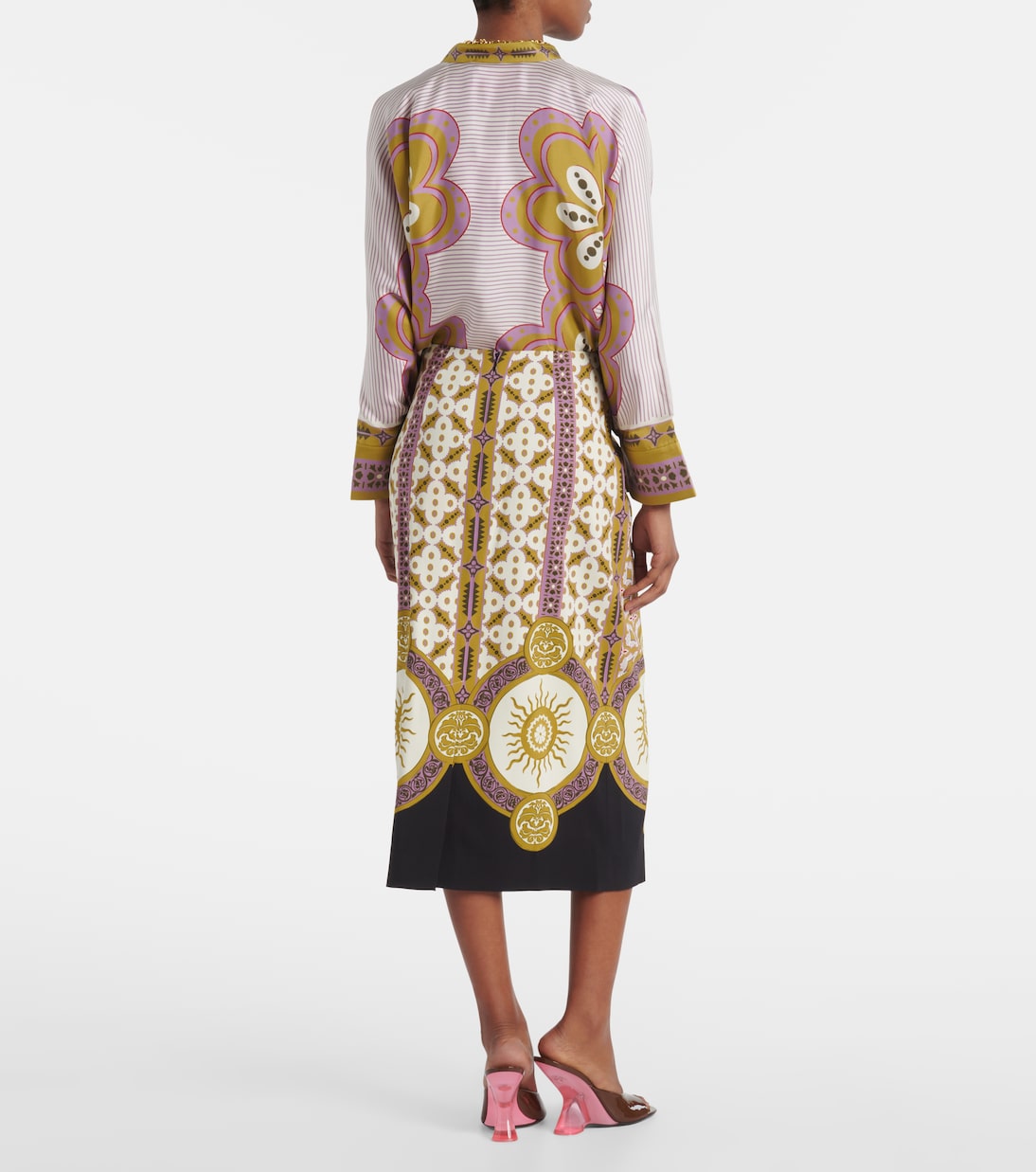 La DoubleJ сотрудничает с ведущими миланскими производителями текстиля, воплощая архивные узоры в своих фирменных эклектичных моделях. Эта юбка-карандаш выделяется ярким принтом и элегантным силуэтом.