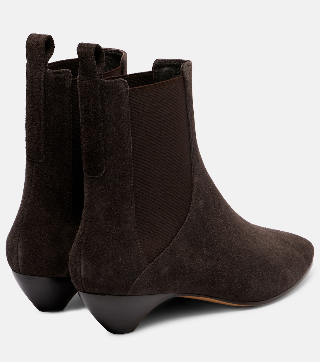 Le Monde Béryl переосмысливает классические силуэты, придавая им изысканную современную чувственность, основанную на мастерстве ручной работы. Ботильоны Allegra изготовлены из мягкой замши и имеют гладкий миндалевидный носок с эластичными вставками по бокам для максимального комфорта.