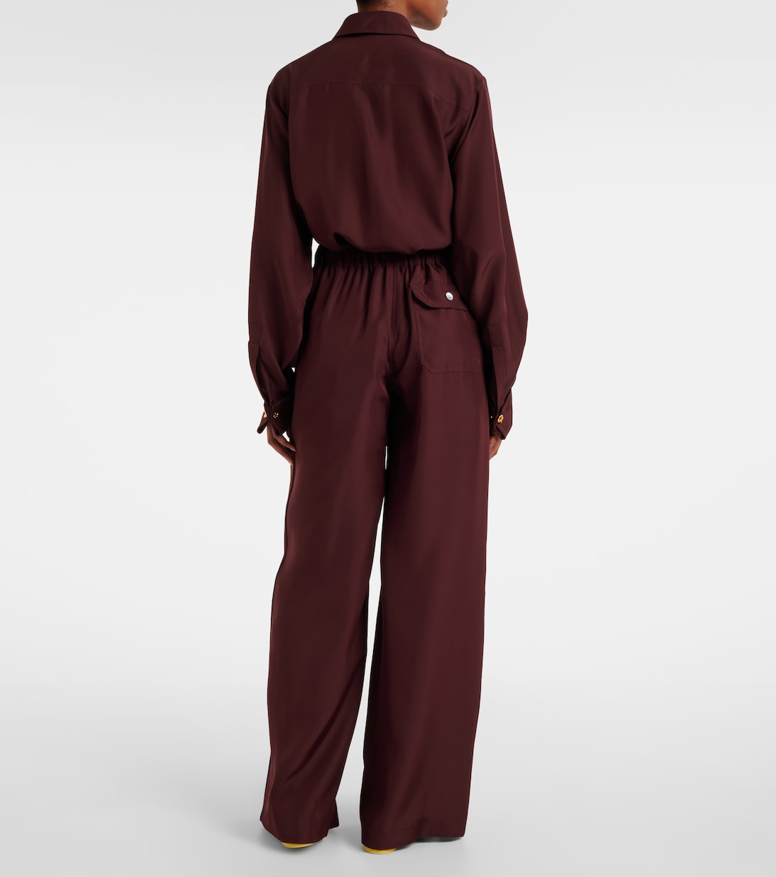 Loewe мастерски сочетает традиции и инновации, предлагая модели, выделяющиеся своей формой и стилем. Эти прямые брюки, изготовленные в Италии из шелка, отличаются элегантными защипами спереди и поясом на эластичной кулиске.