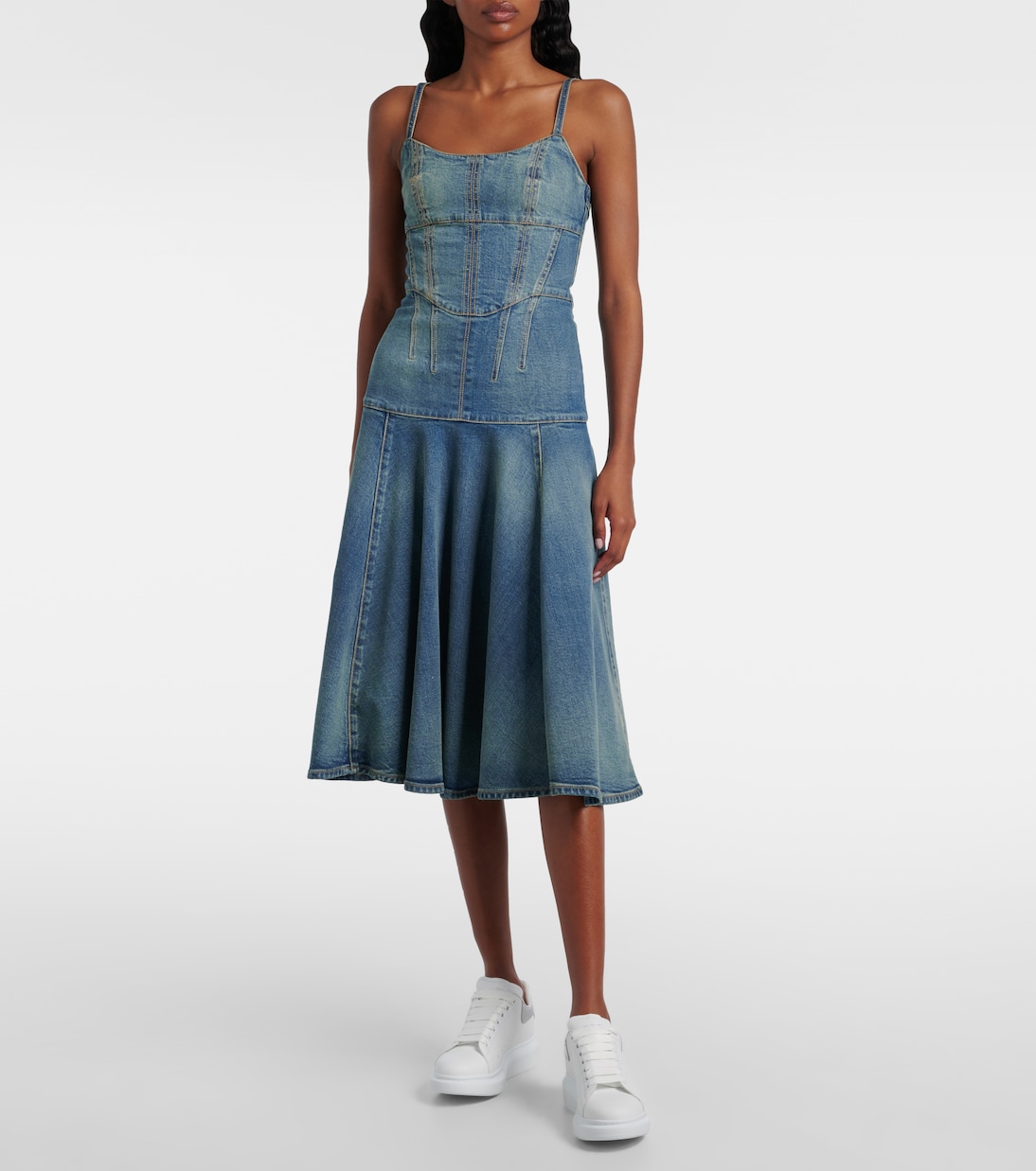 Эта версия культовых кроссовок McQueen Oversize, выполненная из мягкой кожи, отличается металлическим задником с тиснением под крокодила. Дизайн дополняют фирменная толстая резиновая подошва, закруглённый носок и логотип на пятке.