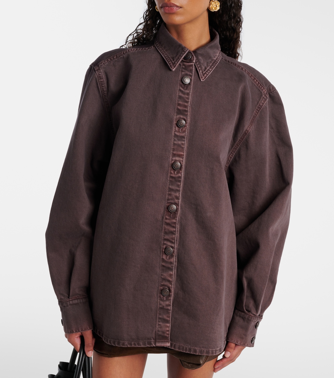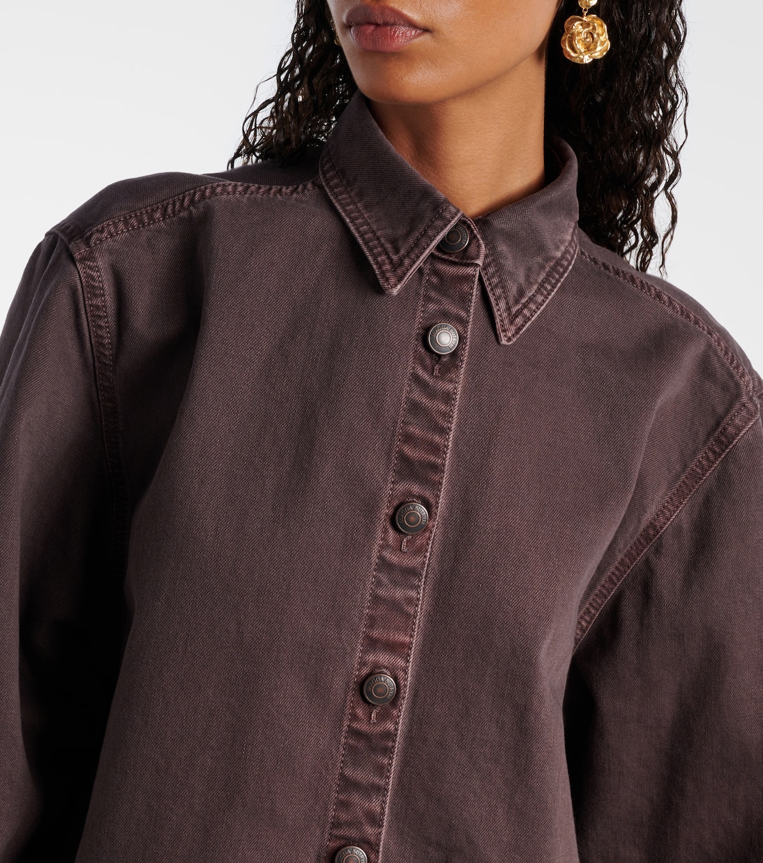 Magda Butrym, встряхивая индустрию своей дерзкой современностью и мастерством исполнения, стремится вдохновлять. Эта джинсовая рубашка свободного кроя со слегка спущенными плечами.