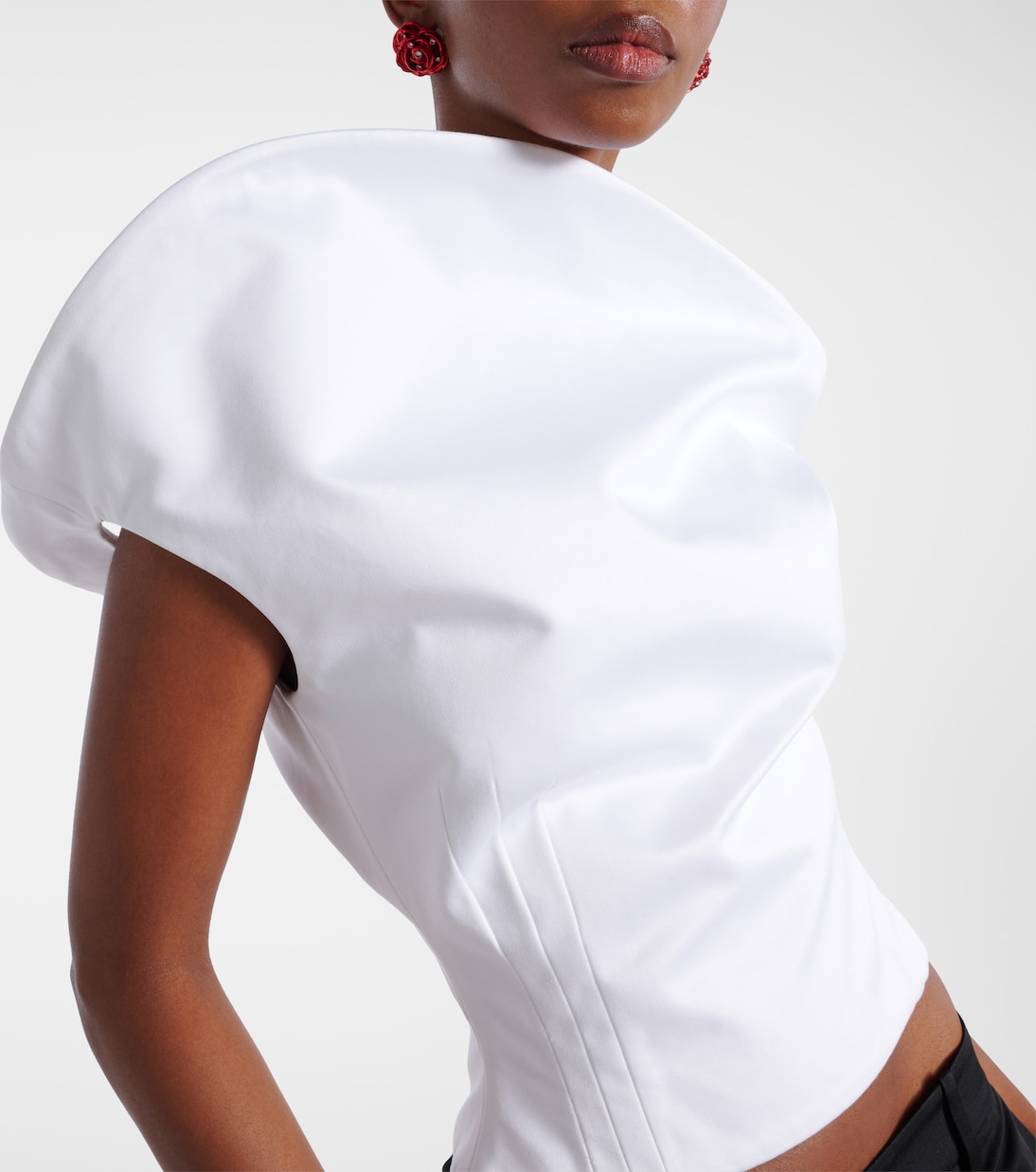 Magda Butrym, встряхивая индустрию своей дерзкой современностью и мастерством исполнения, стремится вдохновлять. Этот топ, выполненный исключительно из хлопка, имеет структурированный асимметричный вырез и лиф-бюстье.
