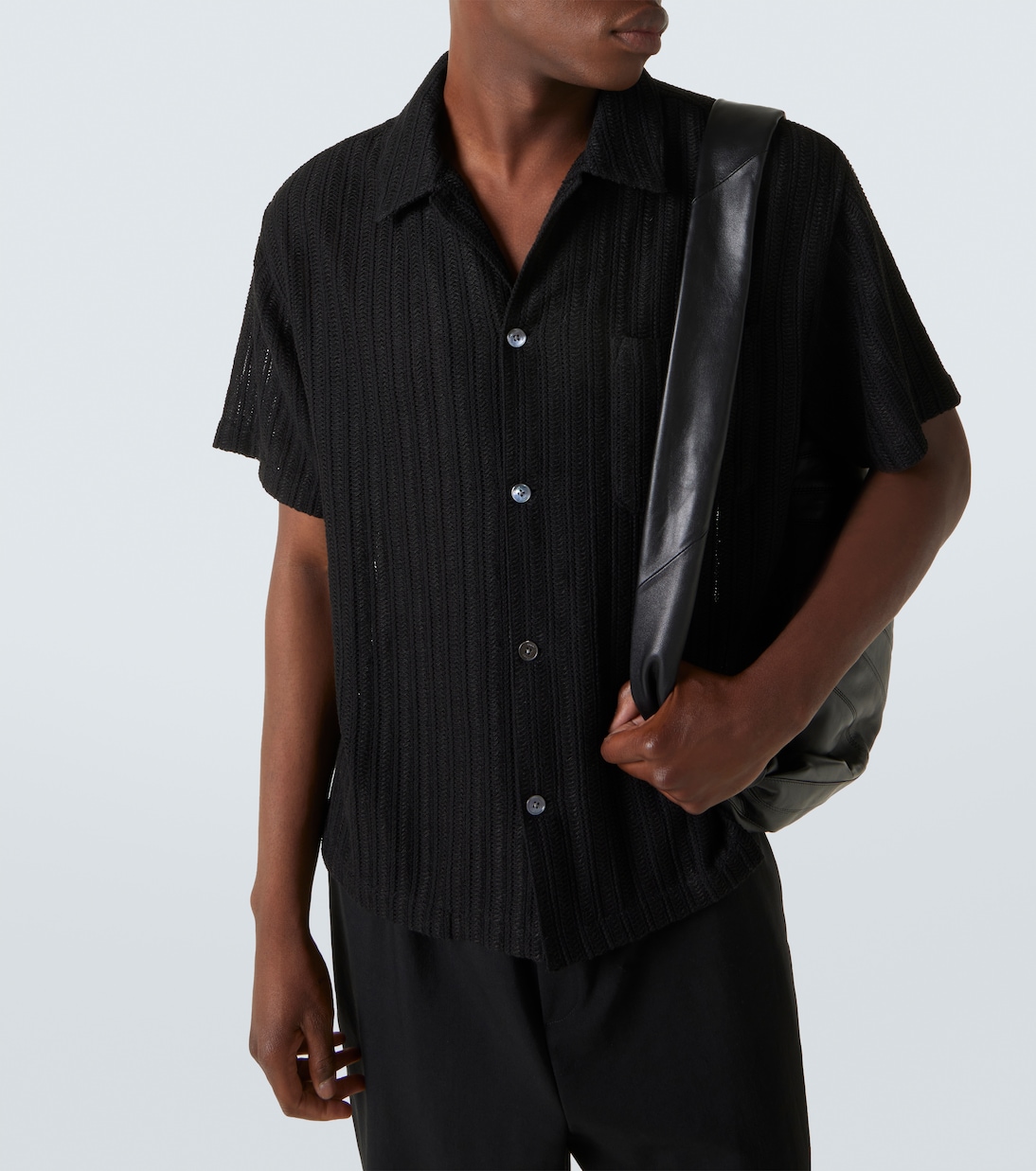 Эта вязаная крючком рубашка от Frame имеет короткие рукава и застежку на пуговицы спереди. Ажурная текстура и свободный силуэт создают непринужденный, но в то же время продуманный образ.